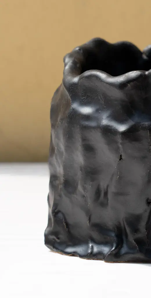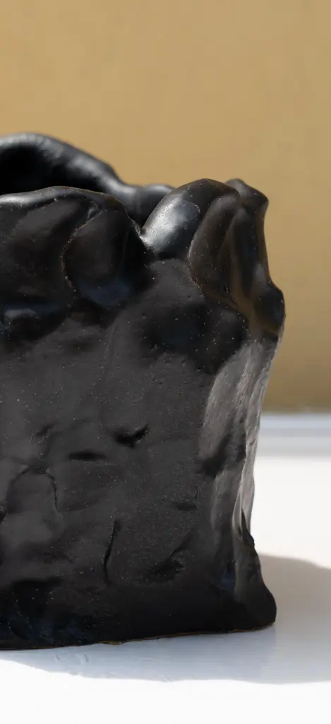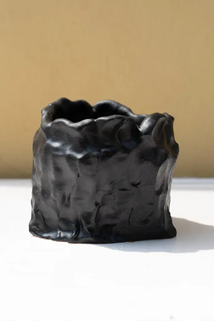 Matte Black vase by Daniele GiannettiDimensions: Ø 17 x H 15 cm.Materials: Glazed terracotta. All pieces are made in terracotta from Montelupo, only fired once, then colored by Daniele Giannetti with a white acrylic base, and then a mixture of acrylic medium, water, and pigments. All vases are rigorously made by hand, without the help of any tool, in a way to express the primary connection between matter, which works a signifier and the deeper understanding of the relationship between humans and nature. These handmade objects subsequently become a new starting point for research into colors and pigments, using traditional materials to create new techniques.Daniele Giannetti is an artist with a background in product design and interior design.