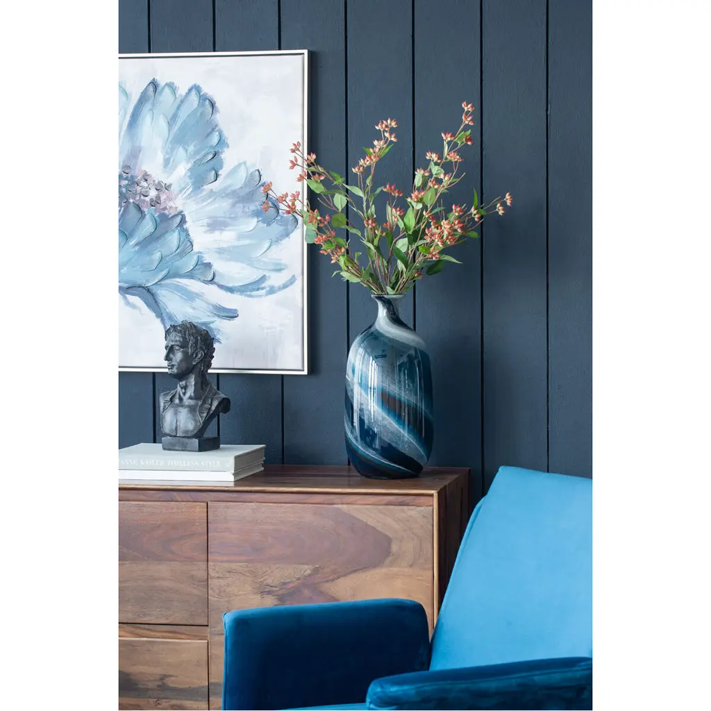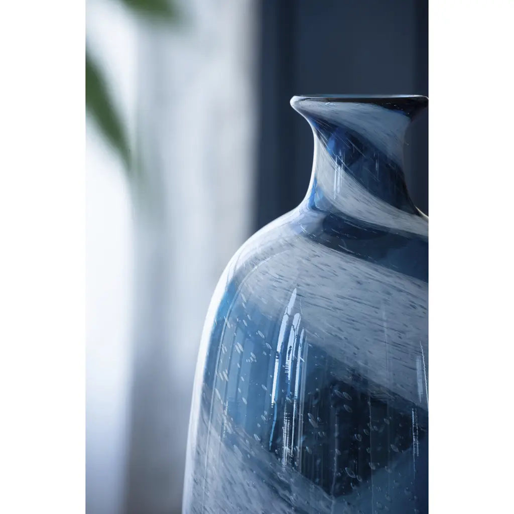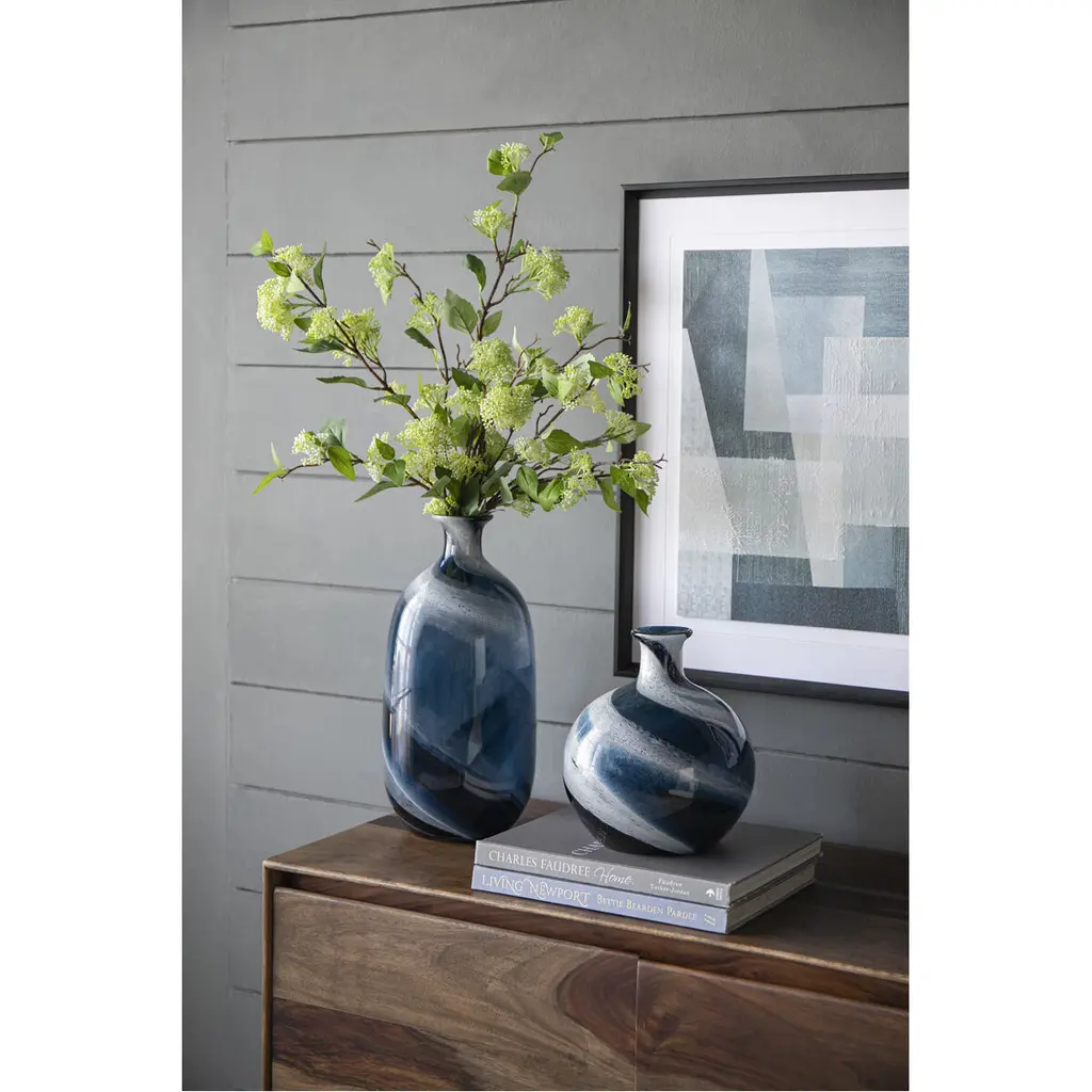 With a swirl of white the Mayron vases bring motion and energy to your décor. Artisan made with deep blue tones and the contrasting white each piece is slightly unique and make a great addition to any room of your home.