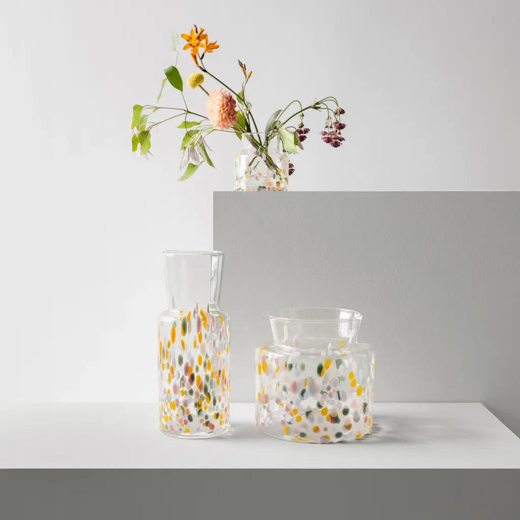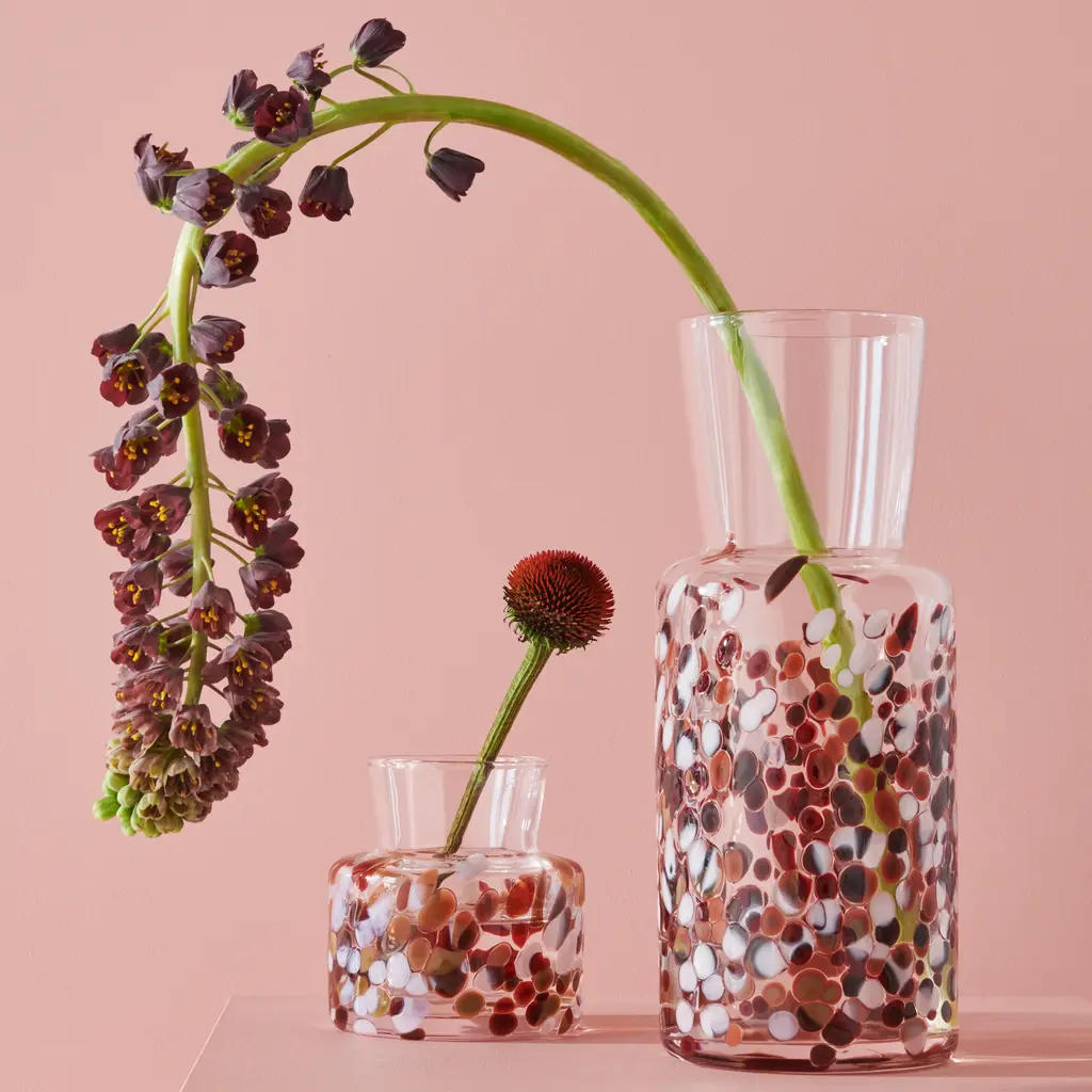 Brighten up your space with the Meadow Vase from Kosta Boda. Expertly crafted, each vase is unique, rolled in crushed glass, creating a one-of-a-kind pattern filled with eye-catching allure. Perfect for a small bouquet or standing alone as a design object, this vase brings a sophisticated pop of pattern to countertops and shelving displays alike. Highlights