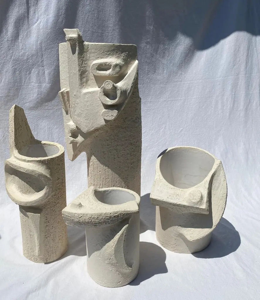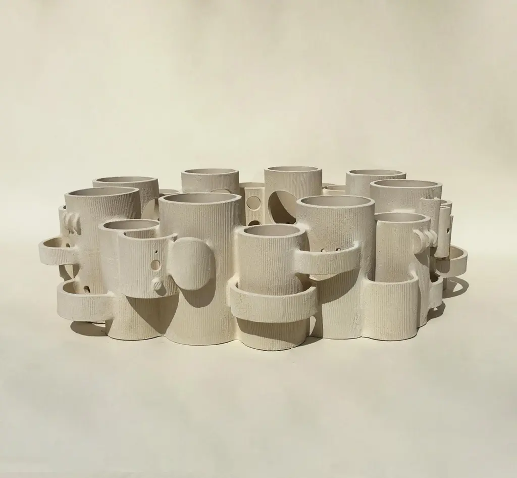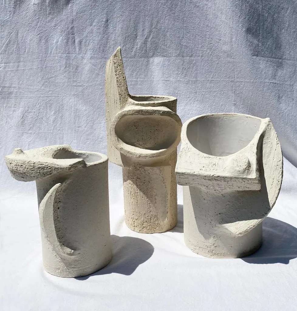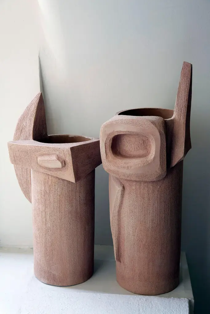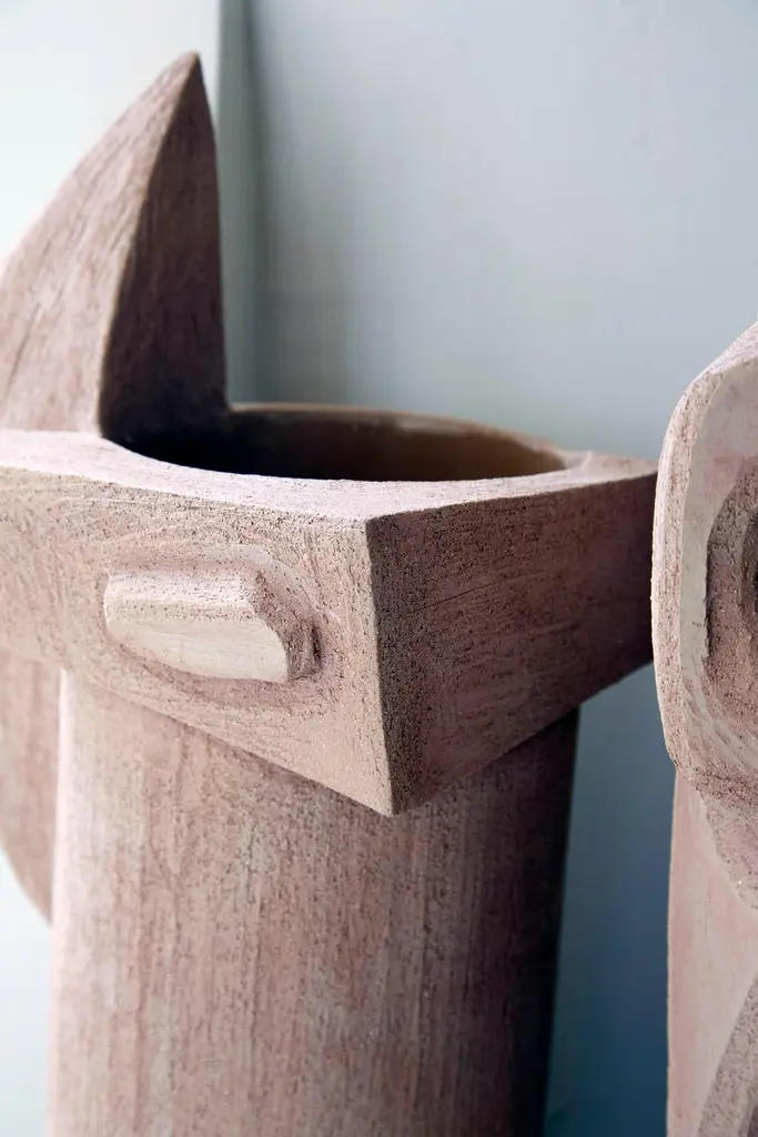 Medium Le Sud vase by Olivia CognetDimensions: D 30 x H 40 cmMaterials: Ceramic.Each of Olivia’s handmade creations is a unique work of art, the snapshot of a precious moment captured in a world of fast ‘everything’.Since moving to Los Angeles in 2016, French artist and designer Olivia Cognet has focused on ceramics as the fertile medium through which she expresses her boundless creativity.With the freedom this material affords to explore every type of shape and size, she creates monumental bas-reliefs and giant totems as well as chairs, tables, lamps and vases.These unique pieces, handmade by the artist in her studio, all share the same high aesthetic, abstract and graphic standards. She draws inspiration from the lights and shadows of the landscapes of California, its modernist architecture and intense nature.Infusing a modern take on the great tradition of decorative arts, her works are both functional and powerfully evocative.Olivia Cognet grew up in Nice on the Côte d’Azur, studied at the Villa Arson and was nourished by the brilliant masters from the school of Vallauris, from Picasso to Roger Capron; for her, ceramics are a key element of architecture.She starts by exploring ideas on paper, before moving to stoneware, using a local clay that comes in three natural shades. Her designs showcase the power of contrasts; her minimal, geometric lines are interwoven with a sensual and organic vocabulary.The austere aesthetic of rough clay is heightened by the elegance of the crackle glazes, which generate singular effects.Elsewhere, ethereal excrescences defy the laws of gravity.Day after day, guided by her intuition, Olivia Cognet reinvents the poetic experience of creation, fashioning work through the purity of the material. This is the magic of the artisan, combined with the promise of vibrant beauty, to enhance everyday life.Marion Vignal.