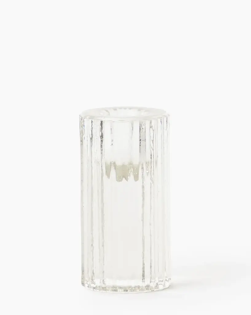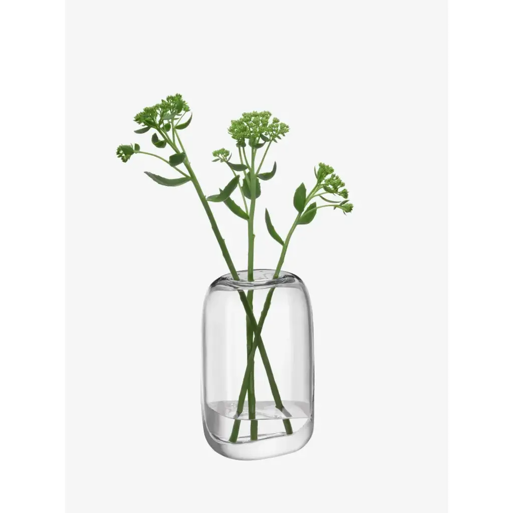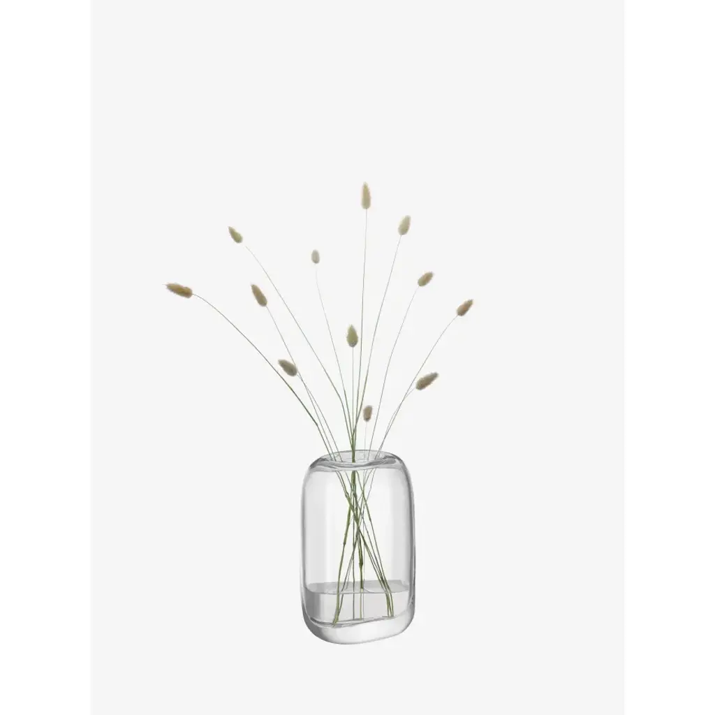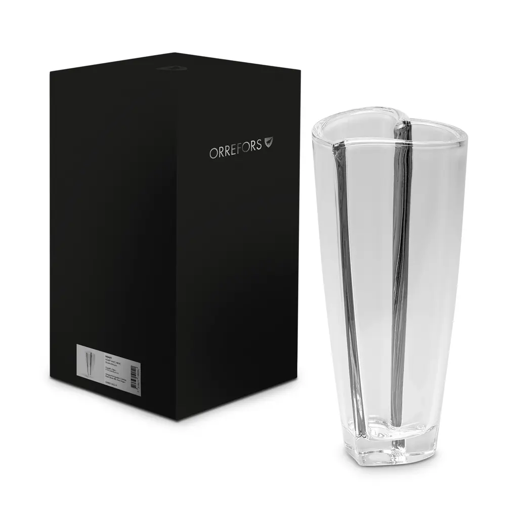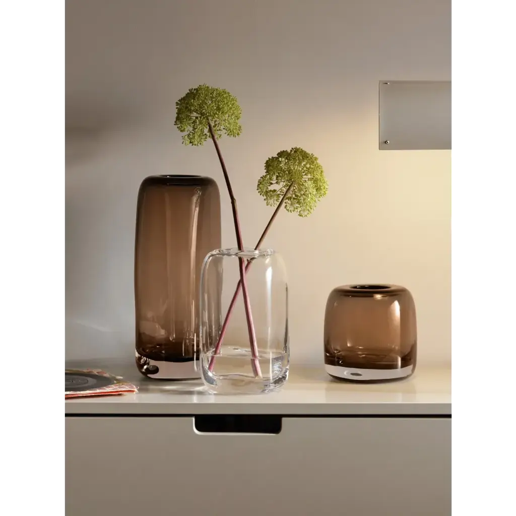 A heavy mouth-blown glass vase with soft rectangular shape.