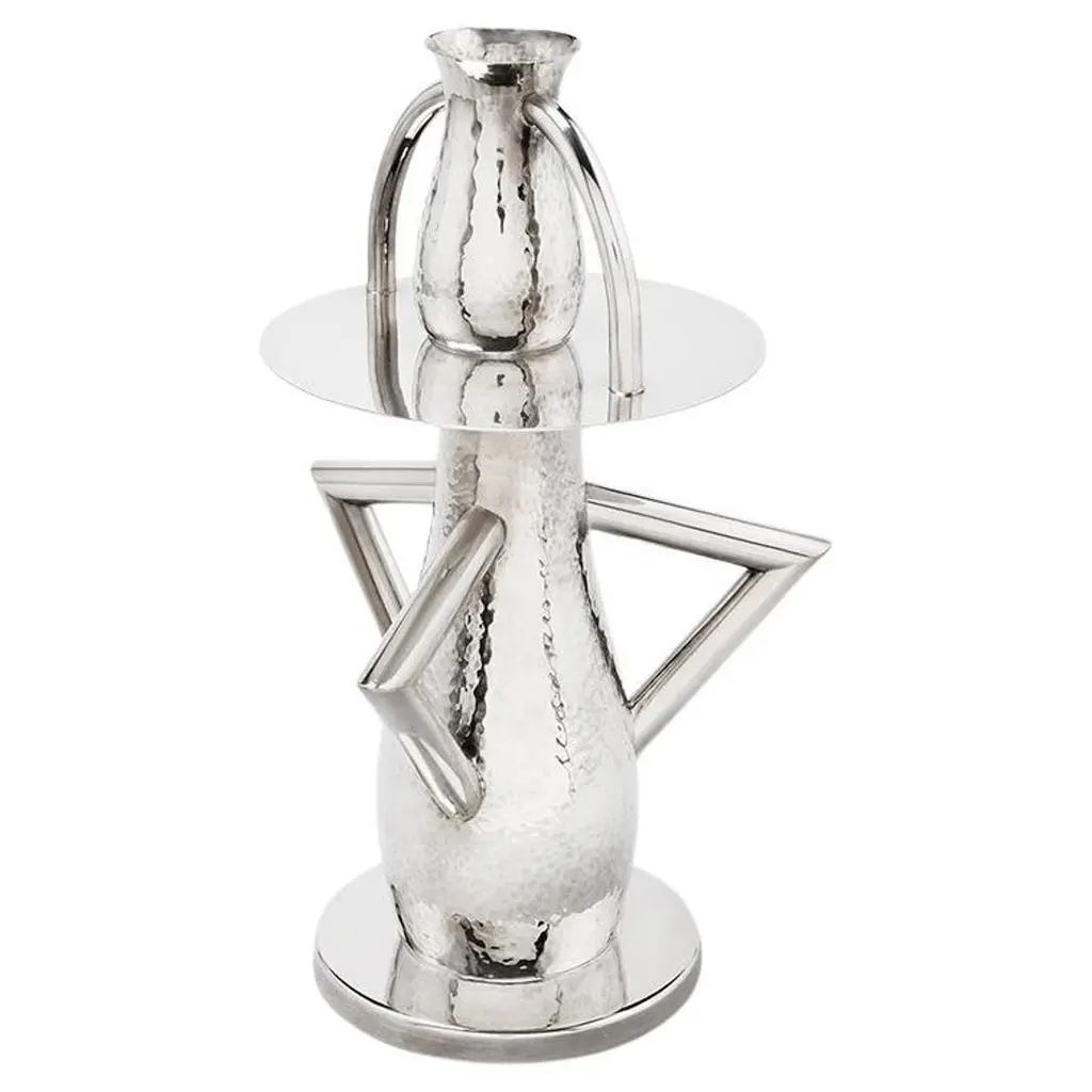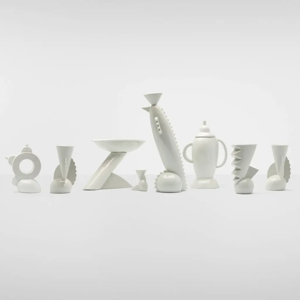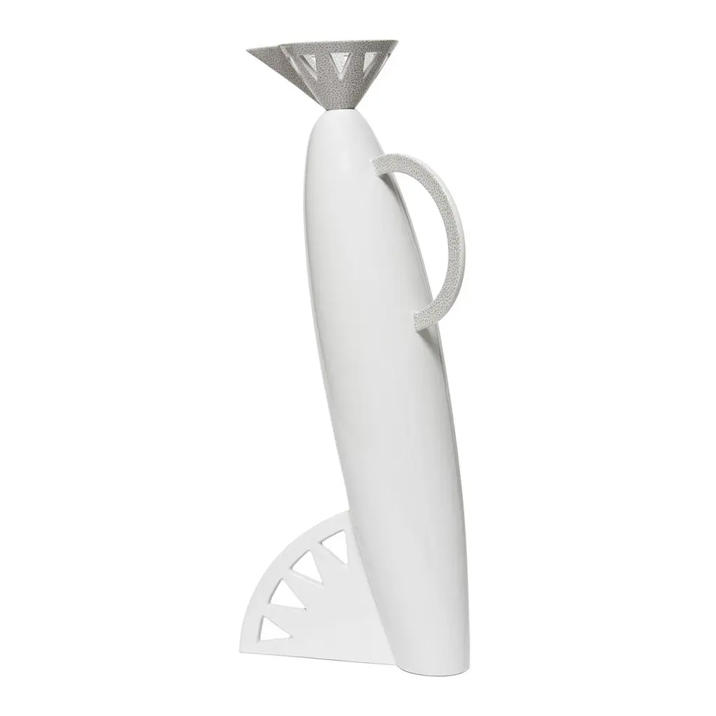 DANUBIO Porcelain Flower Vase Matteo ThunVERY RARE Only about 30 existHand-turned and hand-shaped white porcelain vase with kiln-sublimated decorative decals.The Danubio porcelain is a vase designed by Matteo Thun in 1983 for the Memphis Milano collection. This white, hand-turned and hand-shaped porcelain vase features vivid geometry, with a sinuous body leaning back & supported by two porcelain segments, and a minimalist pattern on the handle and upper funnel. It is characterized by a dynamic, almost precarious balance of its parts, blending Thun's family tradition in ceramics with the bold, postmodern aesthetic of the Memphis movement. Matteo Thun (formally titled Mathäus Antonius Maria Graf von Thun und Hohenstein) was born in Bolzano in 1952. He was the eldest son of the Helene Grabmayr von Angerheim and Otmar von Thun-Hohenstein, who were ceramicists and proprietors of Thun Ceramic Workshops, a historic artisanal ceramic firm based out of the family's castle, Ansitz Klebenstein. Matteo Thun carries the title of Graf (Count) as a member of the illustrious House of Thun and Hohenstein.Thun studied at the Salzburg Academy under Oskar Kokoschka and Emilio Vedova. He graduated in 1975 with a degree in architectural studies at the University of Florence. In 1978 he moved to Milan, met Ettore Sottsass, and in 1981 co-founded Sottsass Associati and the Memphis Group. In 1984 he founded his own studio and worked for Swatch as art director from 1990 to 1993. From 1983 to 2000 he was professor of design and ceramics at the University of Applied Arts in Vienna.He founded Matteo Thun & Partners, a multicultural architecture and design studio with headquarters in Milan, Italy and a subsidiary in Munich, Germany. The company operates internationally and develops hospitality, residential, headquarters, retail and urban design projects and master planning.