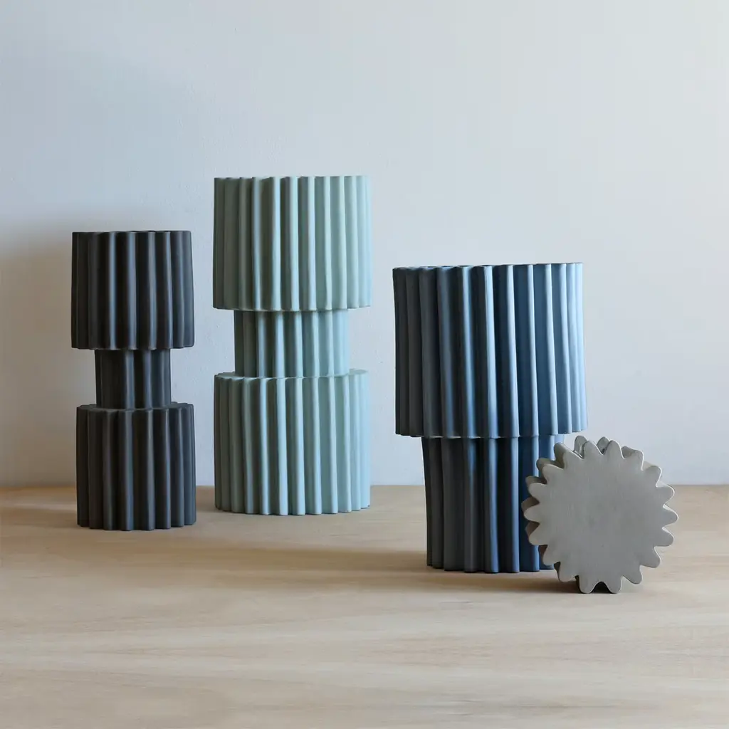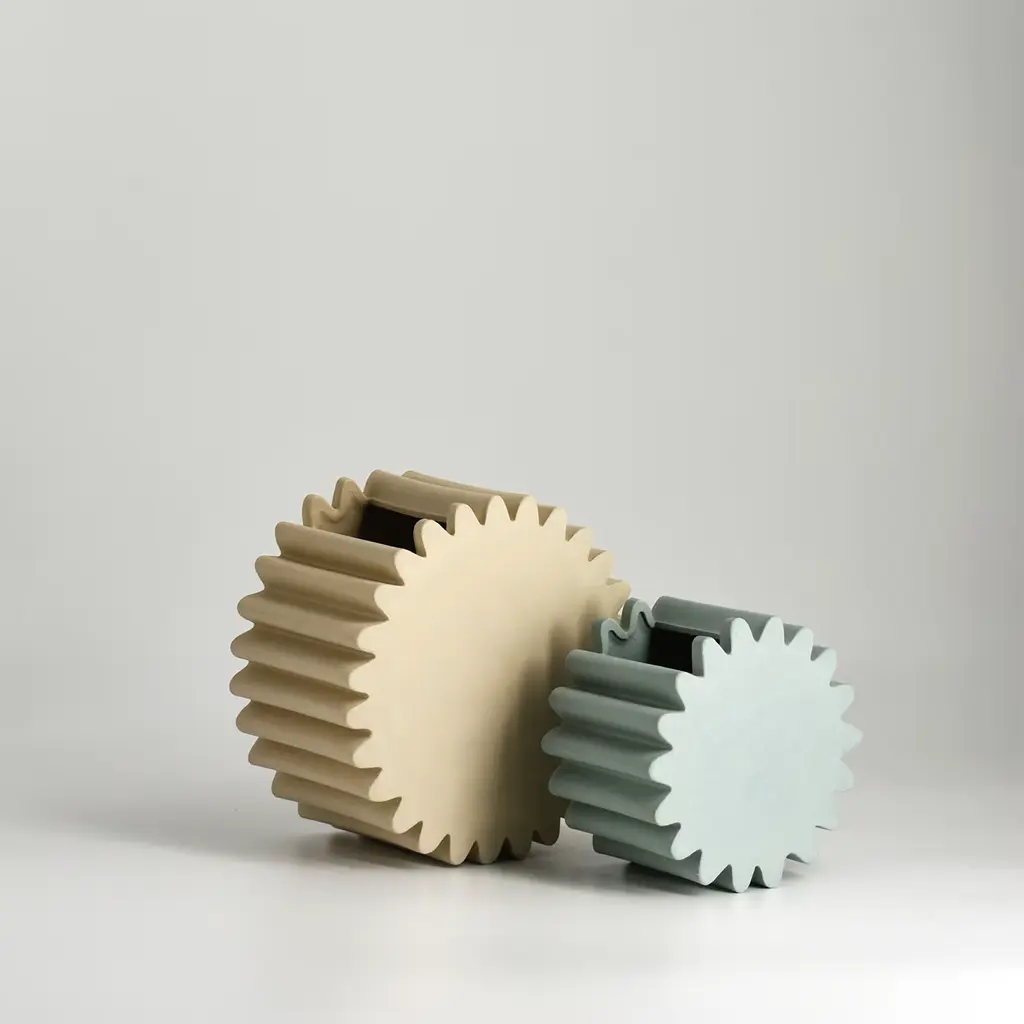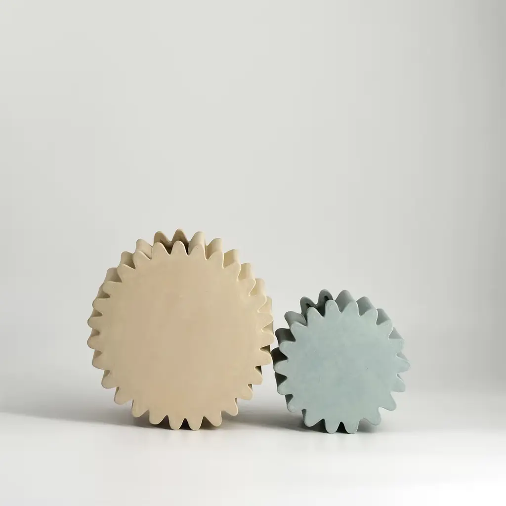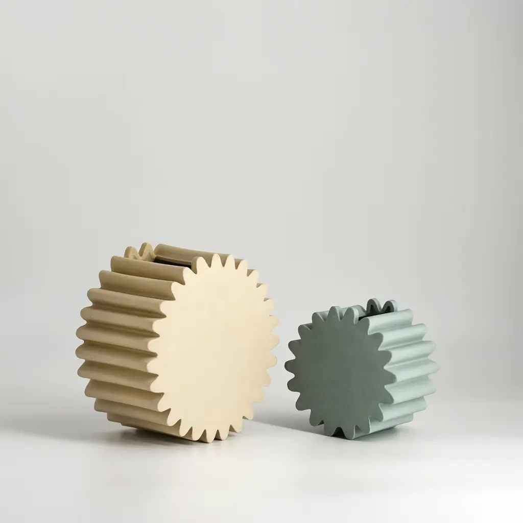 An iconic and playful vase from the I Flessi e Le Torri collection of decorative pieces, this stunning design is handcrafted of a pale green-colored gres. Part of a series named after the Italian word for "meteor", it features a rounded, spiked shape that rotates in different positions on any tabletop. Available in other colors and sizes, please refer to the Concierge for options.