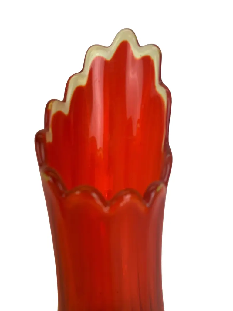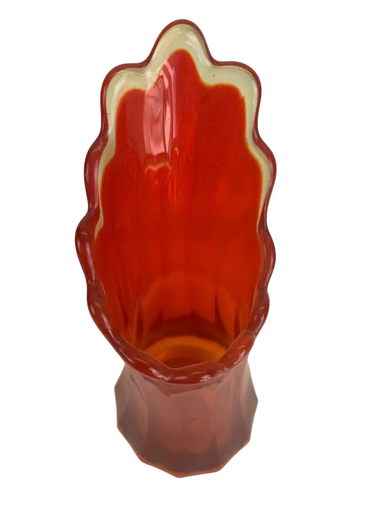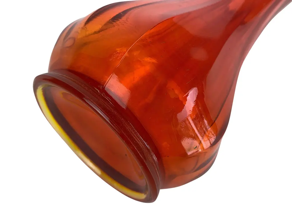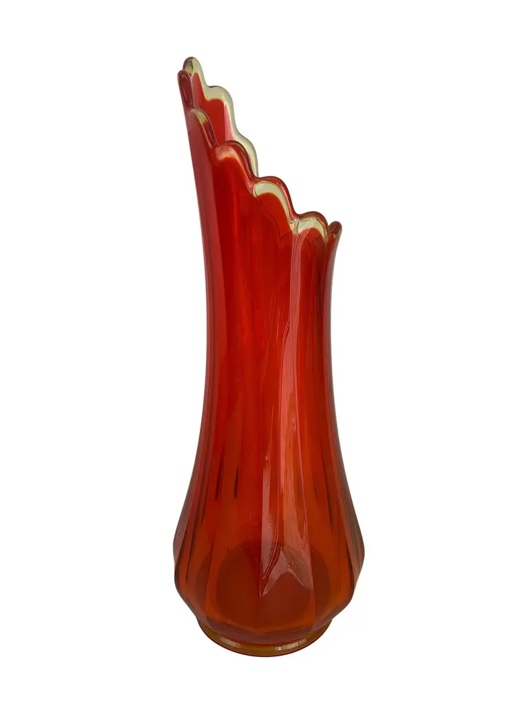 Mid-Century Modern large-scale swung vase by L.E. Smith in bright flame orange. Unmarked.