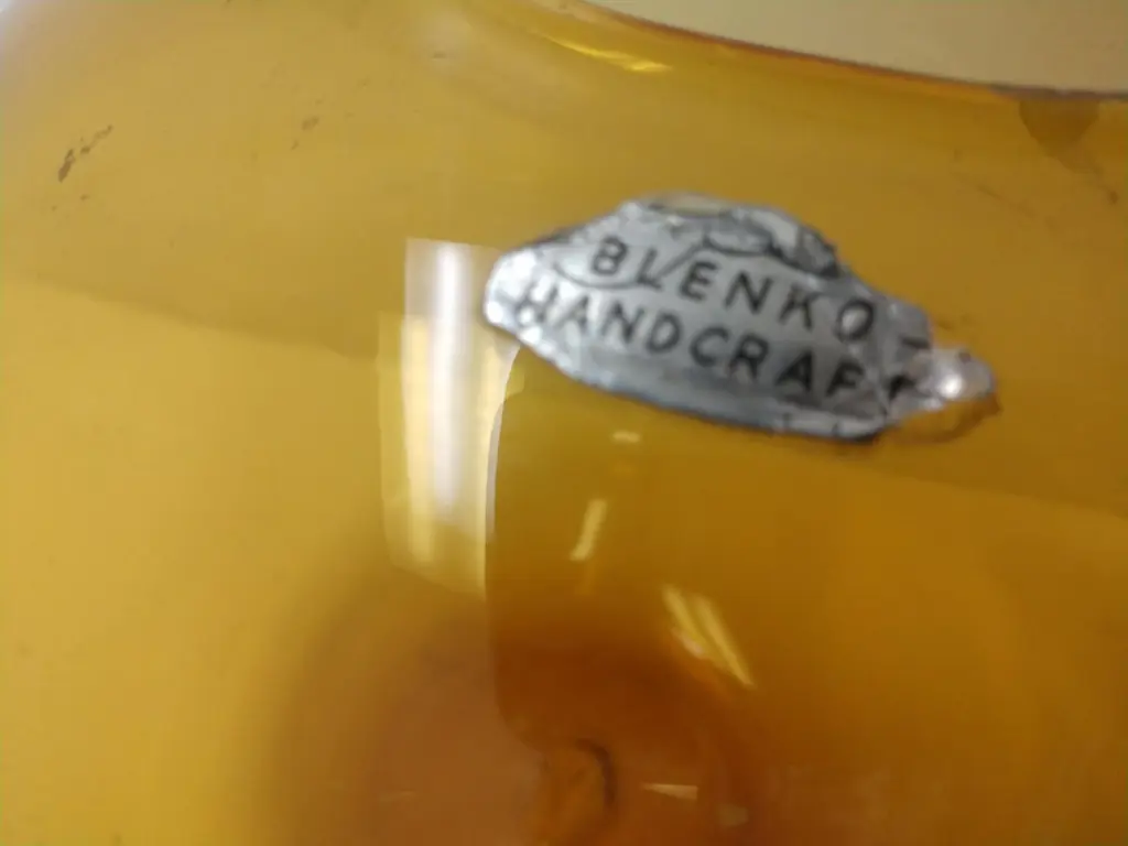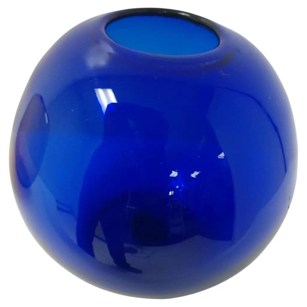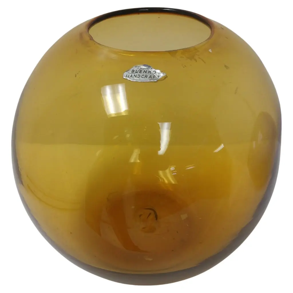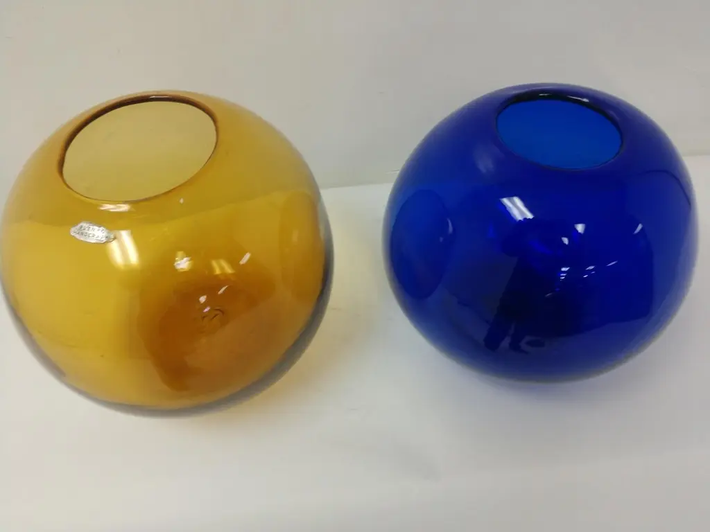Mid-Century Modern Art Glass Vases By Blenko Blue And Amber Ball Form