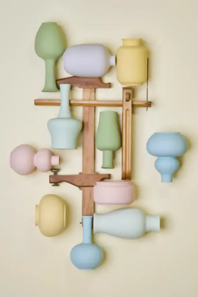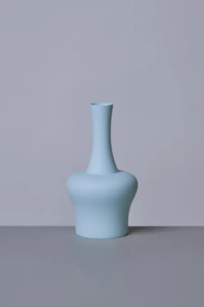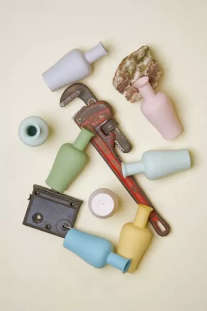fun, modern miniature porcelain vase in a chic matte finish with glazed interior, perfect for fresh or dry arrangements, or as a sculptural object available in dusty pink, mint green, lilac grey, butter yellow, denim blue, orange, and sage green **Content + Care** \- porcelain \- wipe clean with cloth, soap and water \- Imported **Size + Fit** \- H x D: 5.125 in x 2.5 in
