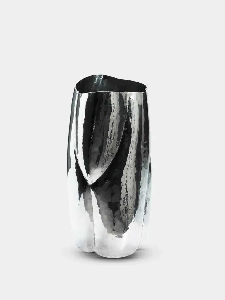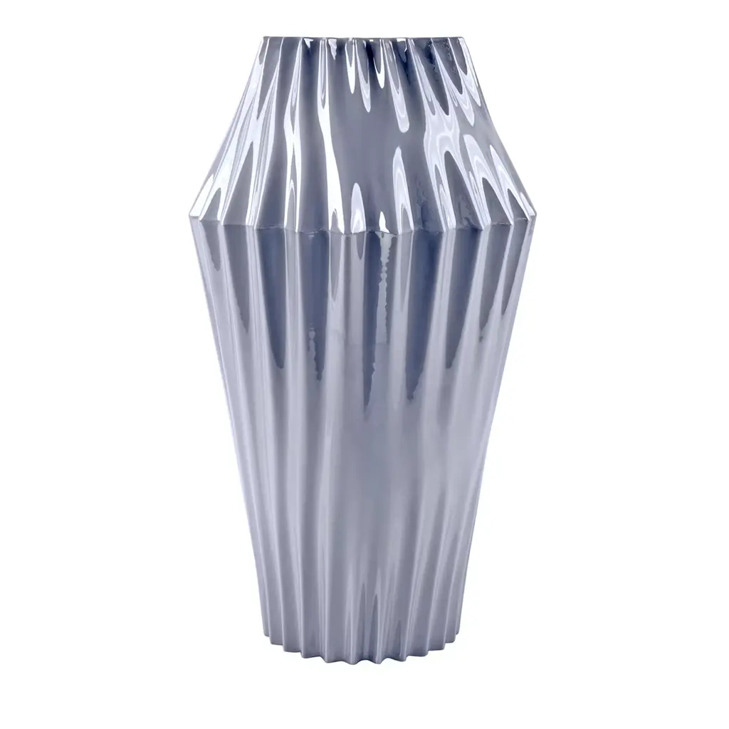 The Midnight Waves Vase has been lovingly crafted from mouth-blown glass, showcasing a stunning indigo blue coloration. The pieces display a ruffled vertical striations, imbuing texture and tasteful asymmetry to any interior space.