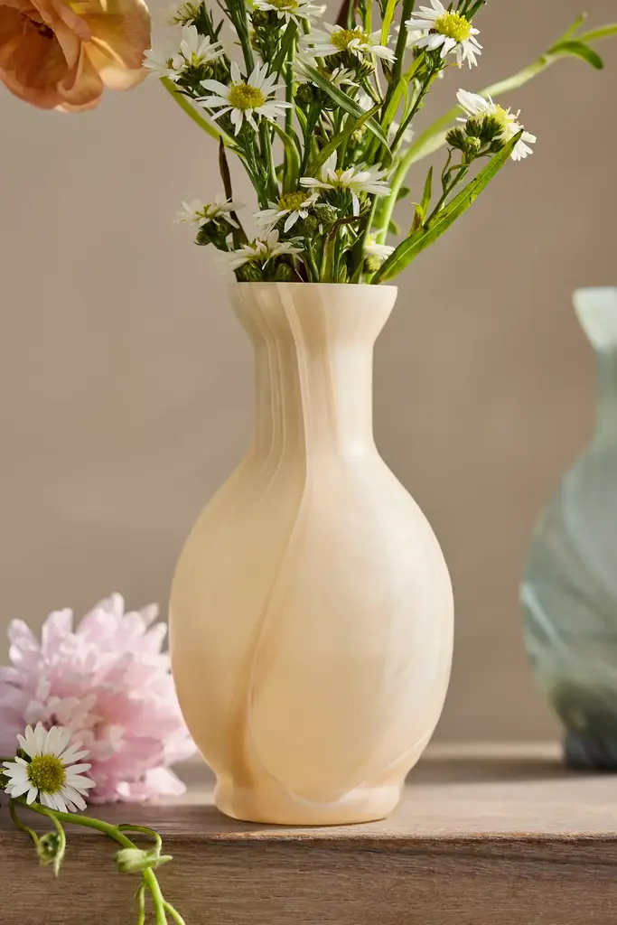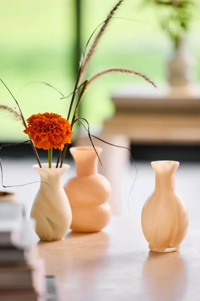 Designed and hand-crafted especially for terrain, this swirly glass bud vase makes a pretty home for garden fresh stems.