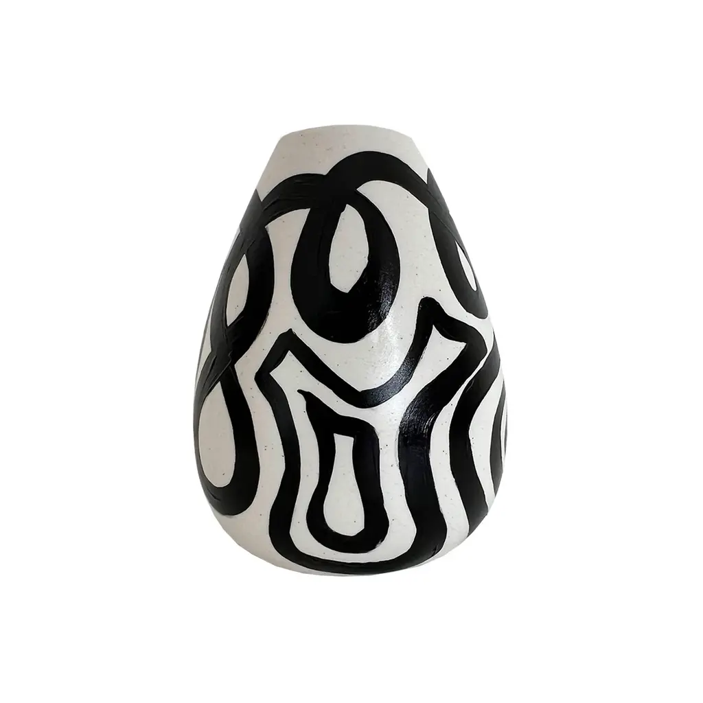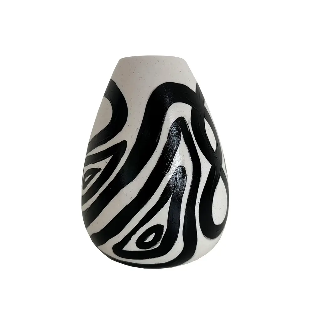 Our mini white vase with hand-painted abstract black swirls around the whole vase. A perfect gift for a birthday, wedding, anniversary, house warming etc. A lovely little piece to brighten up your home too. The length is 10.6cm.