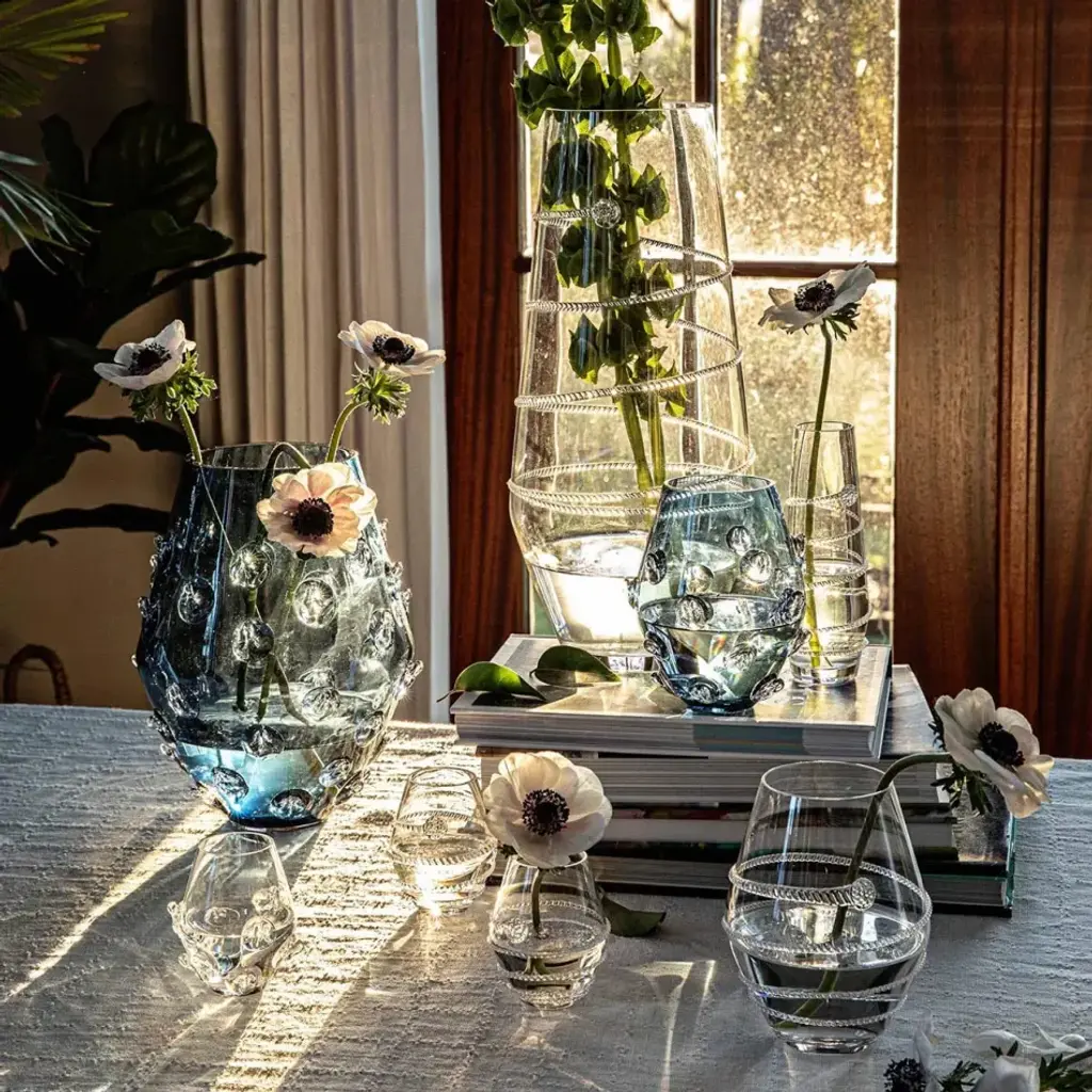 A trio of petite mix & match Florence and Amalia Bohemian glass vases fun to arrange as a centerpiece or select a few joyful blooms for each to brighten your living spaces. Gift boxed. Based in Connecticut, Juliska is committed to bringing elegant European design into our modern homes. Since its founding in 2001, when David and Capucine Gooding began by working with artisans outside of Prague to reproduce antique Bohemian glass pieces, every piece from Juliska has shared a rich heritage spanning six centuries of European design. Juliska's creations are timeless, romantic and effortlessly chic.