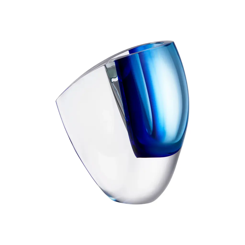 The Mirage Vase by Göran Wärff is a stunning decorative piece from the Kosta Boda Artist Collection. Mouth-blown at Kosta Glassworks using a unique angled pipe technique, its soft, curved form captures warm colors that shimmer like spectra. This elegant vase adds a refined touch of artistry and light to any interior. Highlights