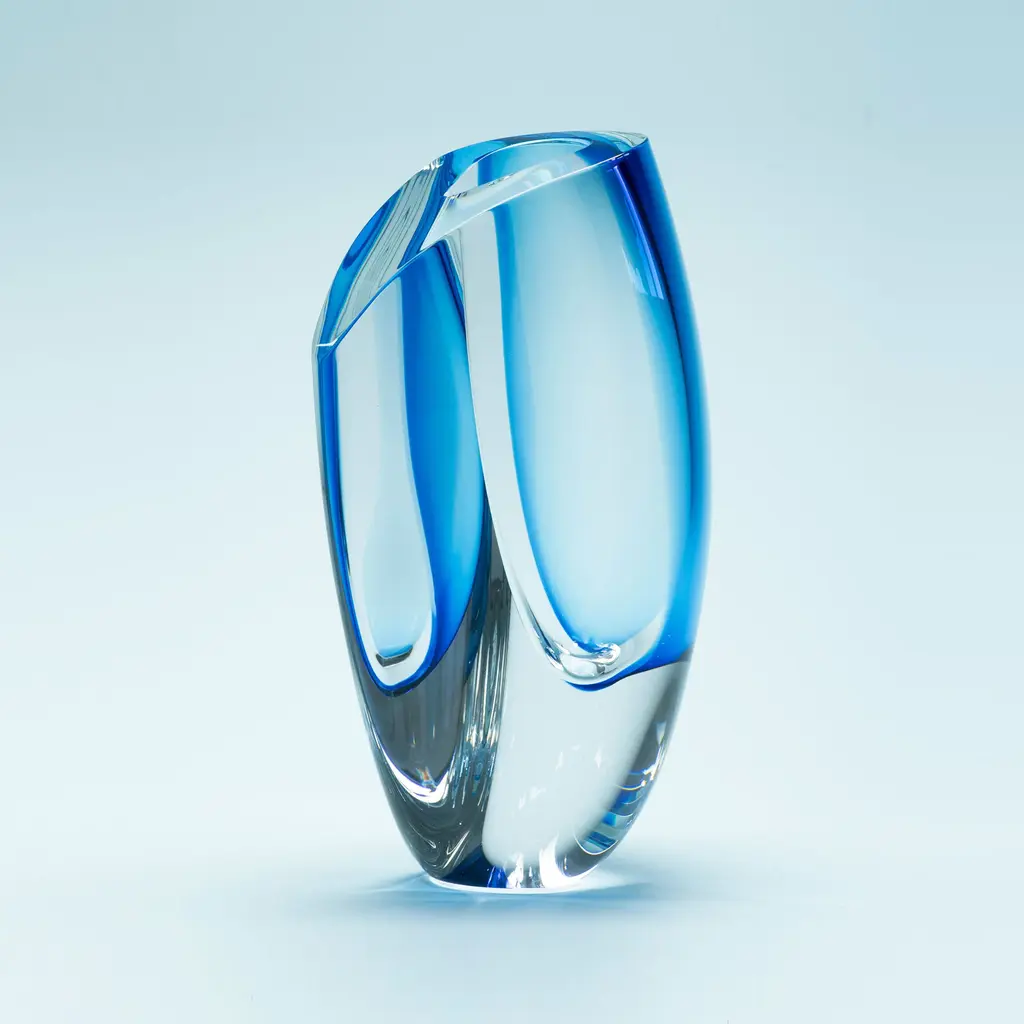The Mirage Vase by Göran Wärff is a stunning decorative piece from the Kosta Boda Artist Collection. Mouth-blown at Kosta Glassworks using a unique angled pipe technique, its soft, curved form captures warm colors that shimmer like spectra. This elegant vase adds a refined touch of artistry and light to any interior. Highlights