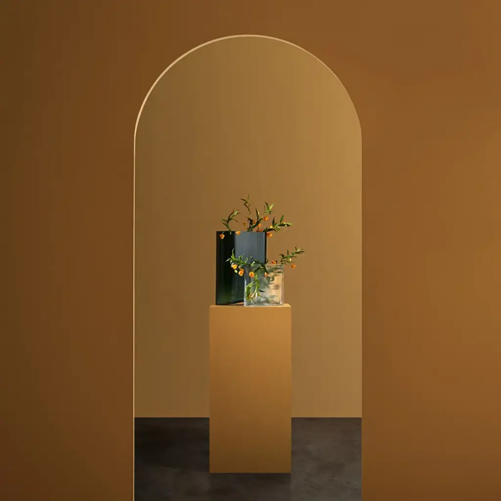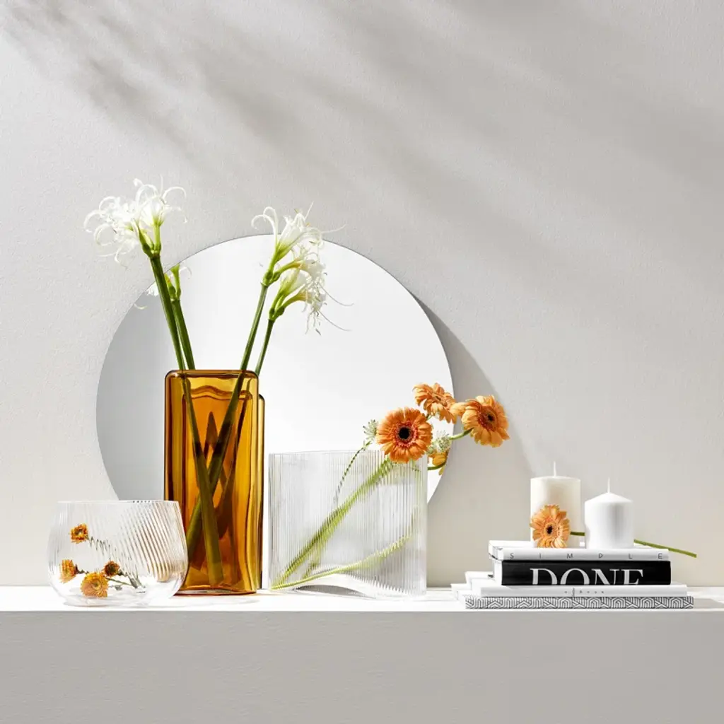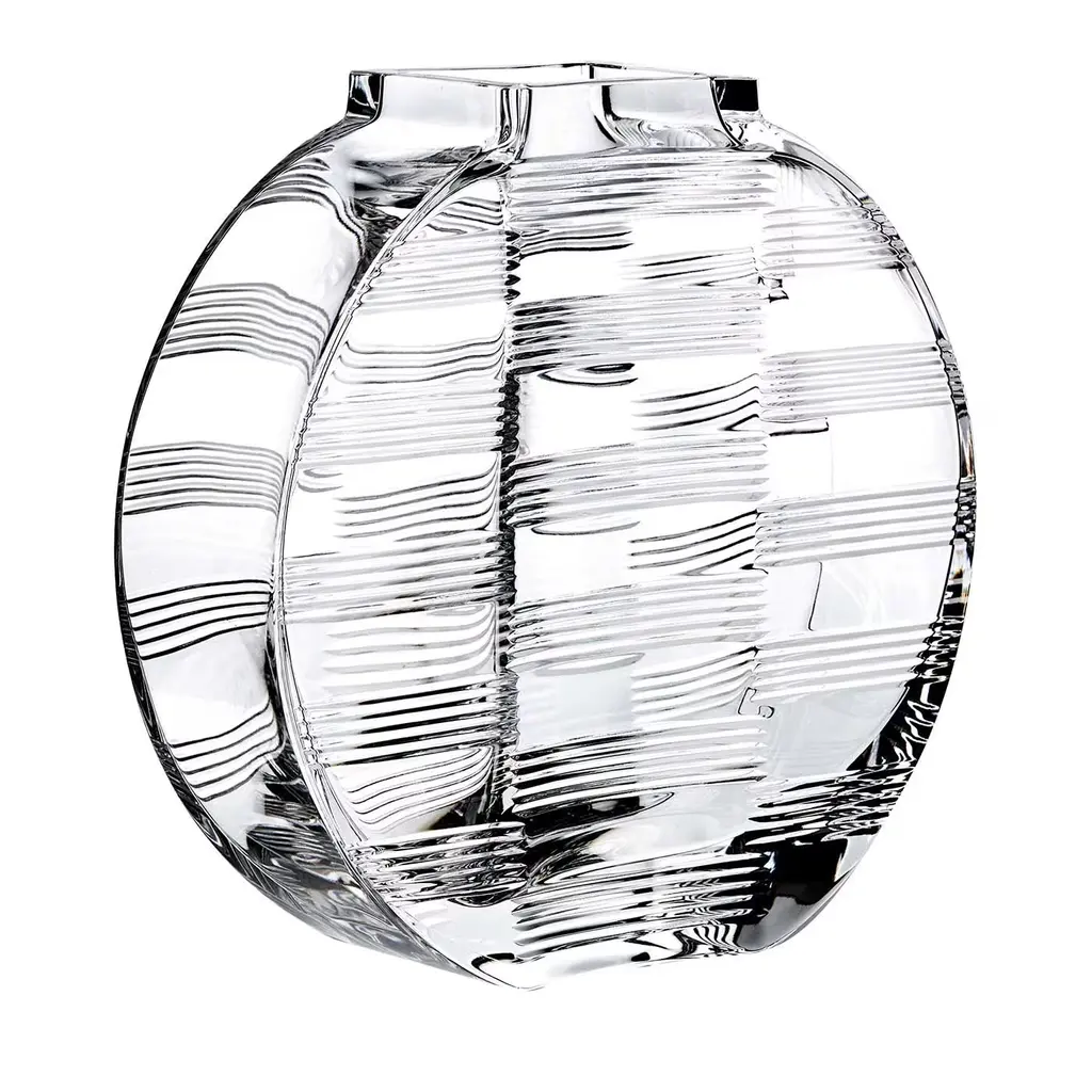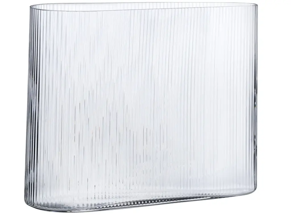 This wide, sculptural vase from the Mist collection by Nude is created using traditional glassmaking methods: cast from lead-free corrugated crystal, a simple yet decorative piece is formed. The tactile ripple effect makes the flower stems seem slightly blurred, redirecting the eye to the petals.