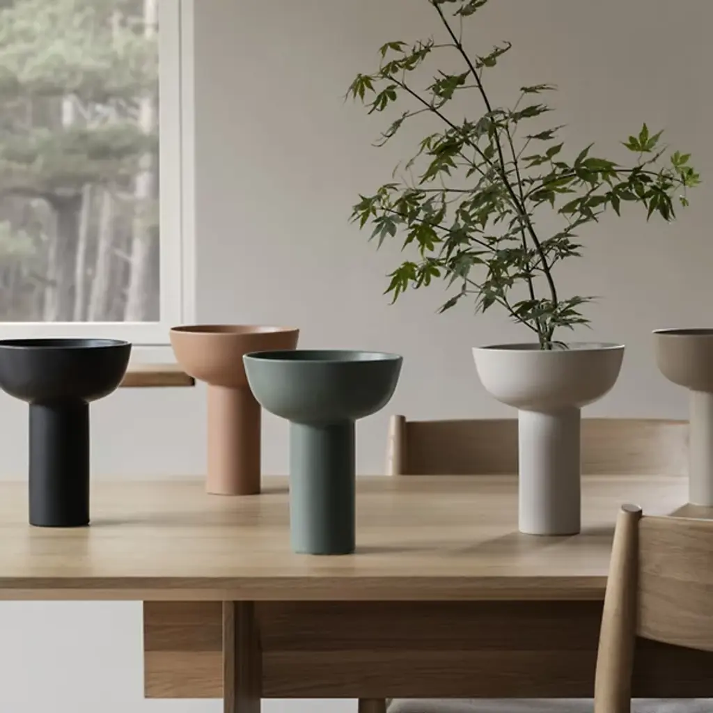 Decorate your living space with the Miyabi Vase by Blomus. This vase is crafted of durable stoneware, taking on the shape of a bowl. A cylindrical base keeps the bowl elevated and balanced. This vase is compactly made to fit atop your tables or shelves. This vase’s ultra-modern appearance is admirable, whether you feature this furnishment as a standalone piece or as a method for showcasing your favorite plant.