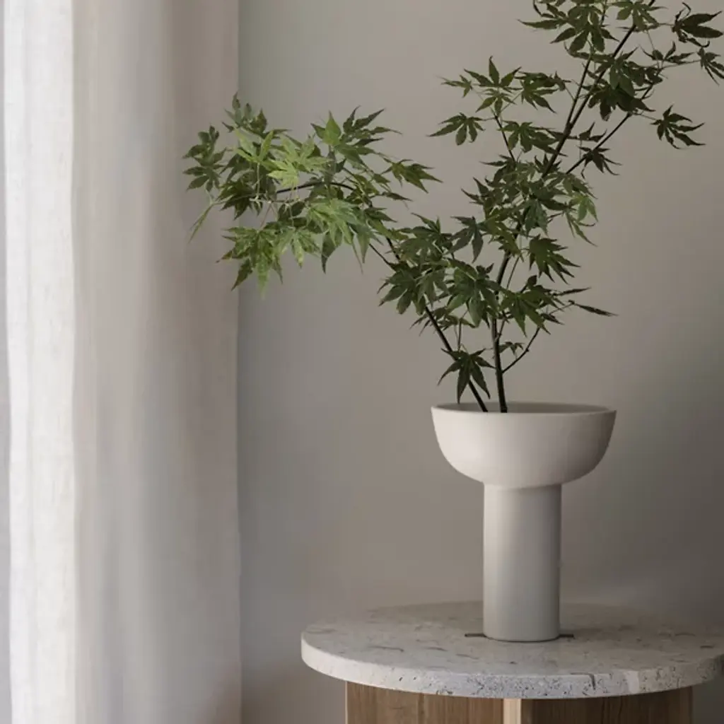 Decorate your living space with the Miyabi Vase by Blomus. This vase is crafted of durable stoneware, taking on the shape of a bowl. A cylindrical base keeps the bowl elevated and balanced. This vase is compactly made to fit atop your tables or shelves. This vase’s ultra-modern appearance is admirable, whether you feature this furnishment as a standalone piece or as a method for showcasing your favorite plant.