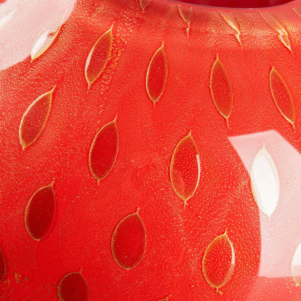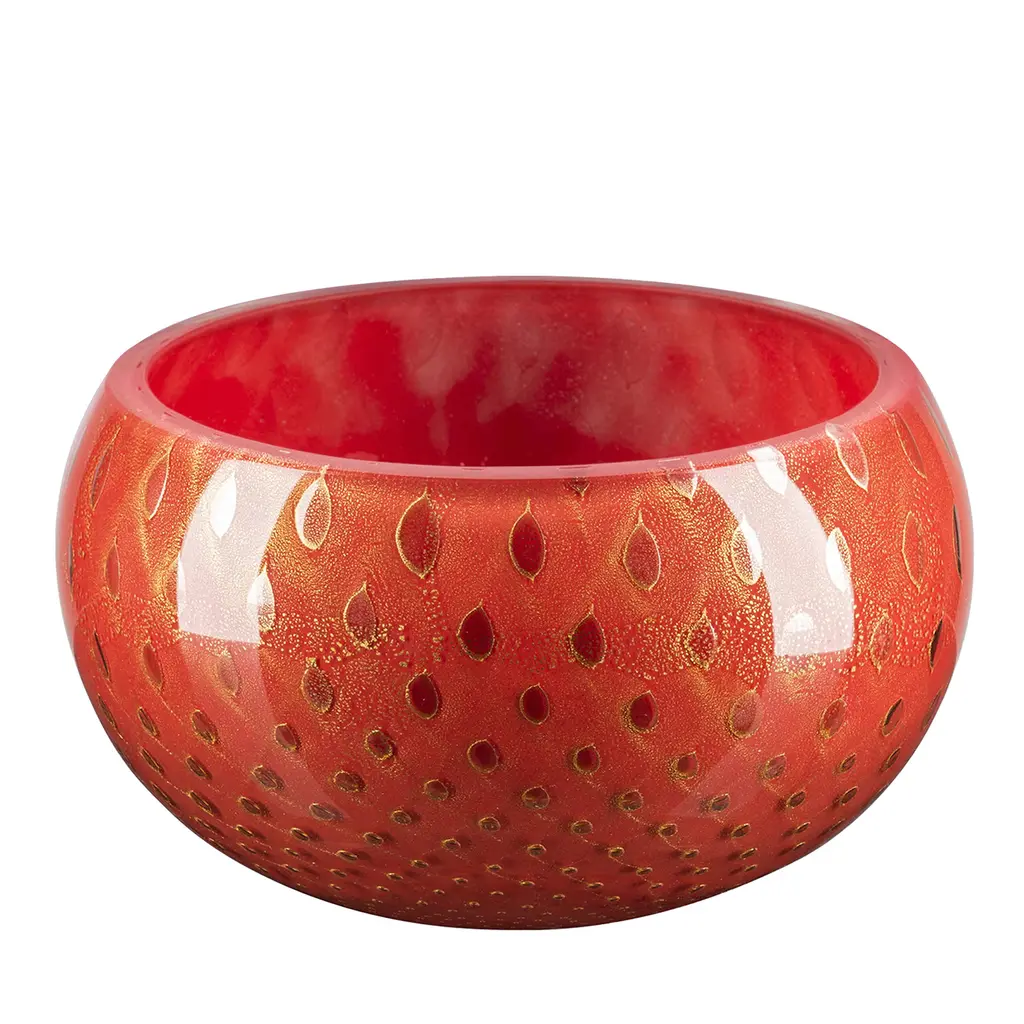 The unrivaled mastery of Muranese glassblowers made this singular spherical vase possible. Glamorous in its bright-red hue enriched with a motif of golden dots capable of stunning shimmers, it will simultaneously add a pop of color and tradition to any surface, from modern sideboards to sophisticated wedding tables. More colors are available in the Artemest catalog.