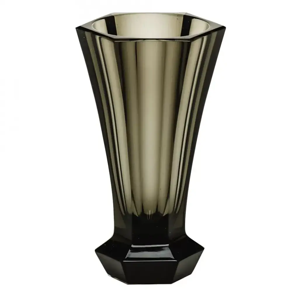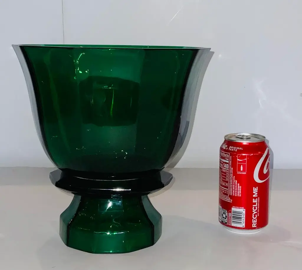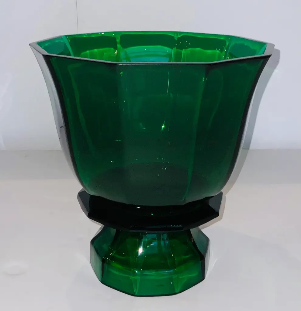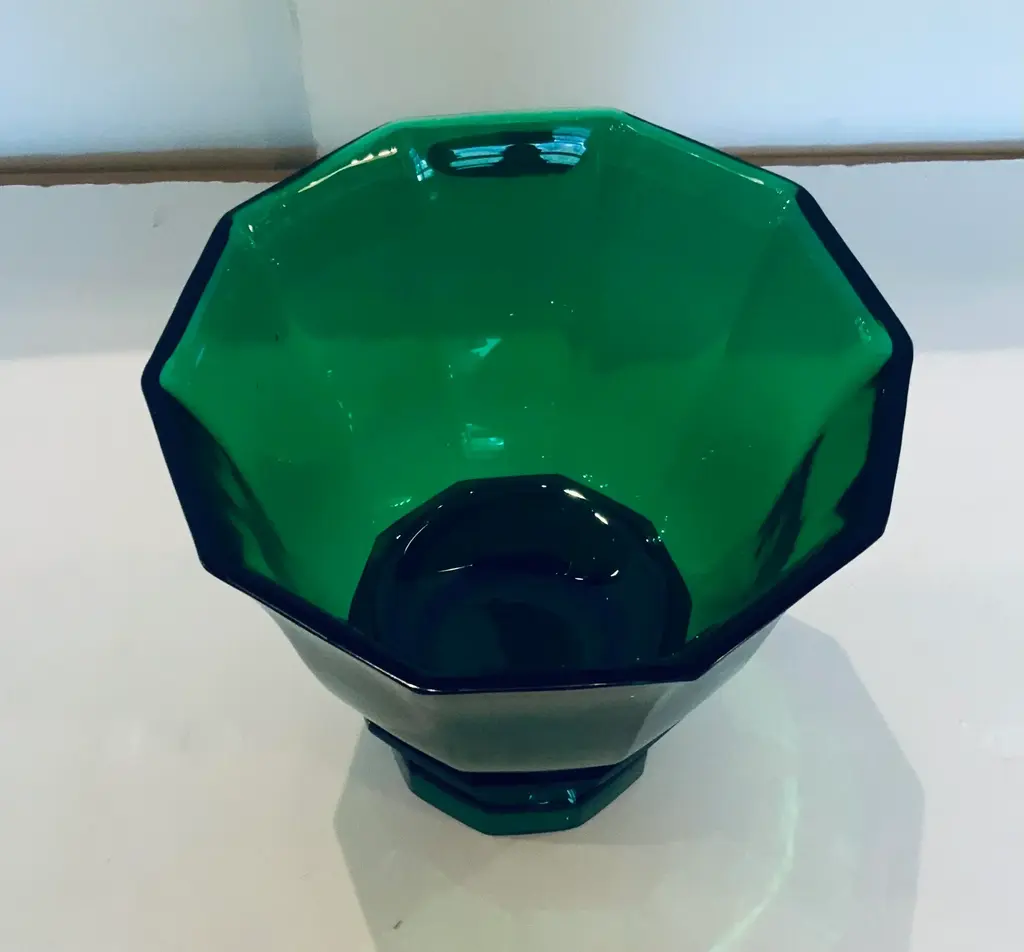 Stylish Modern Emerald Green Faceted Glass Vase, showroom floor sample