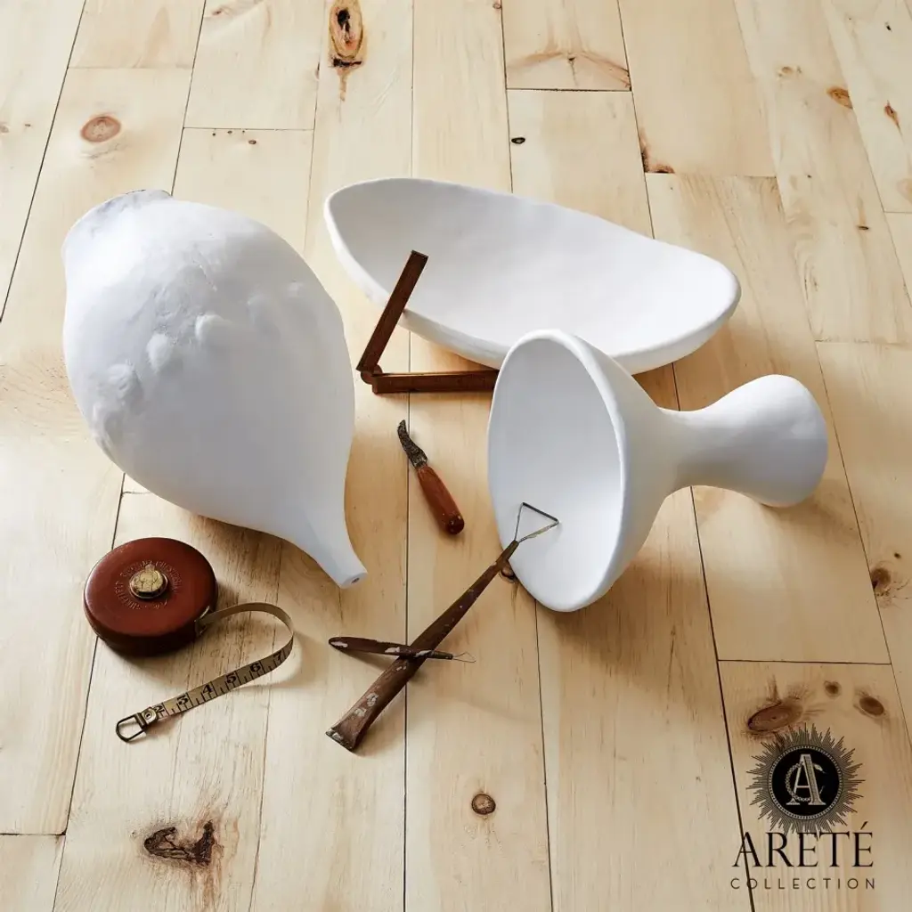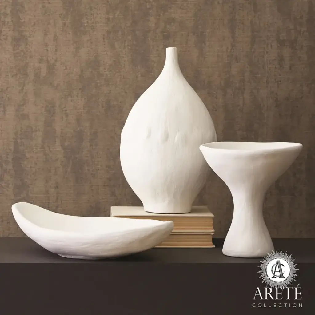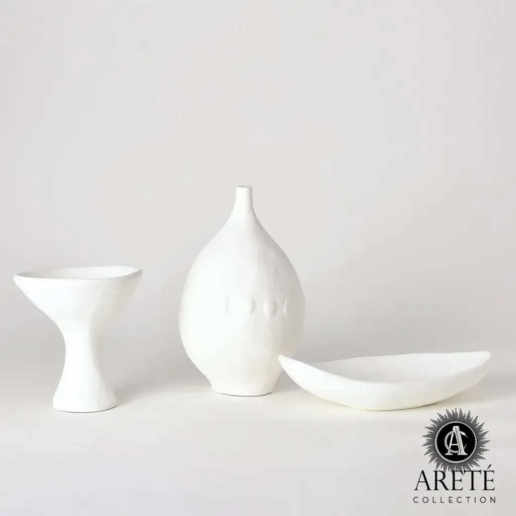 Inspired by ever chic 1940's high design, this collection pushes the boundaries of form and function. Abstract sculptures as bowl, urn and vase. Cast in plaster. Hand cast in plaster with natural matte white finish. From a fashion forward perspective, Global Views offers accessories, furniture, statement lighting, and an assortment of rugs and mirrors to add beauty and joy to your home.
