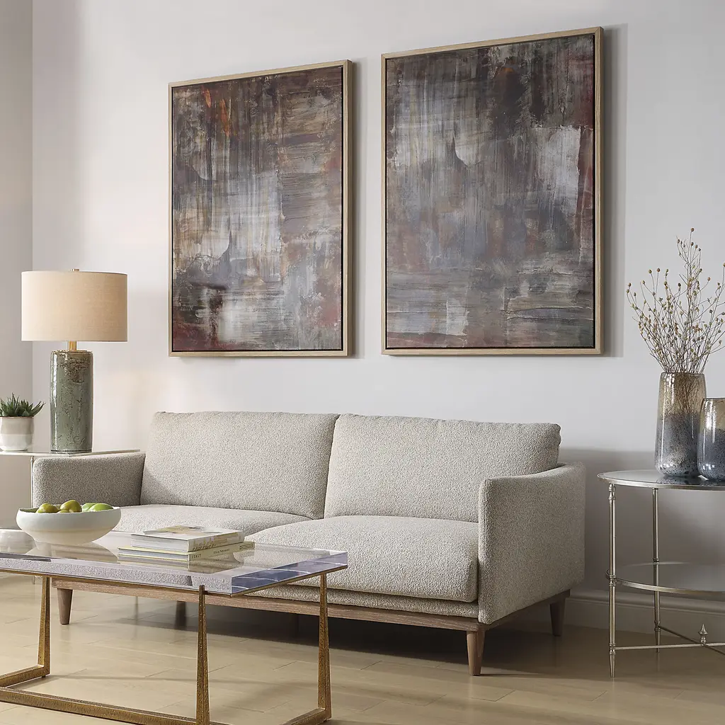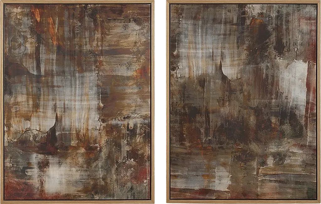 Molten Patina Earth Tones And Light Oak Framed Canvases, Set Of 2