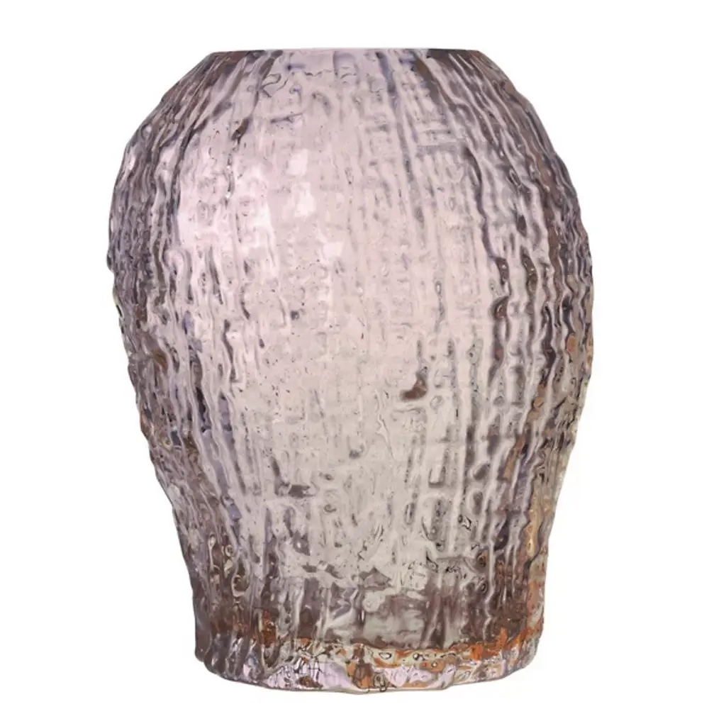 The Molten Vase from Nude showcases fluid, organic textures that mimic flowing lava across its orange-tinted crystal surface, creating dynamic movement through sculpted ridges. Designed by Edizalp Akin and crafted in Turkey from mouth-blown lead-free crystal, this piece originated from a handcrafted ceramic model that was 3D scanned to capture every nuanced detail. The innovative production process unites traditional glassmaking with modern technology, resulting in a textured form that harmonizes naturally with plant stems.