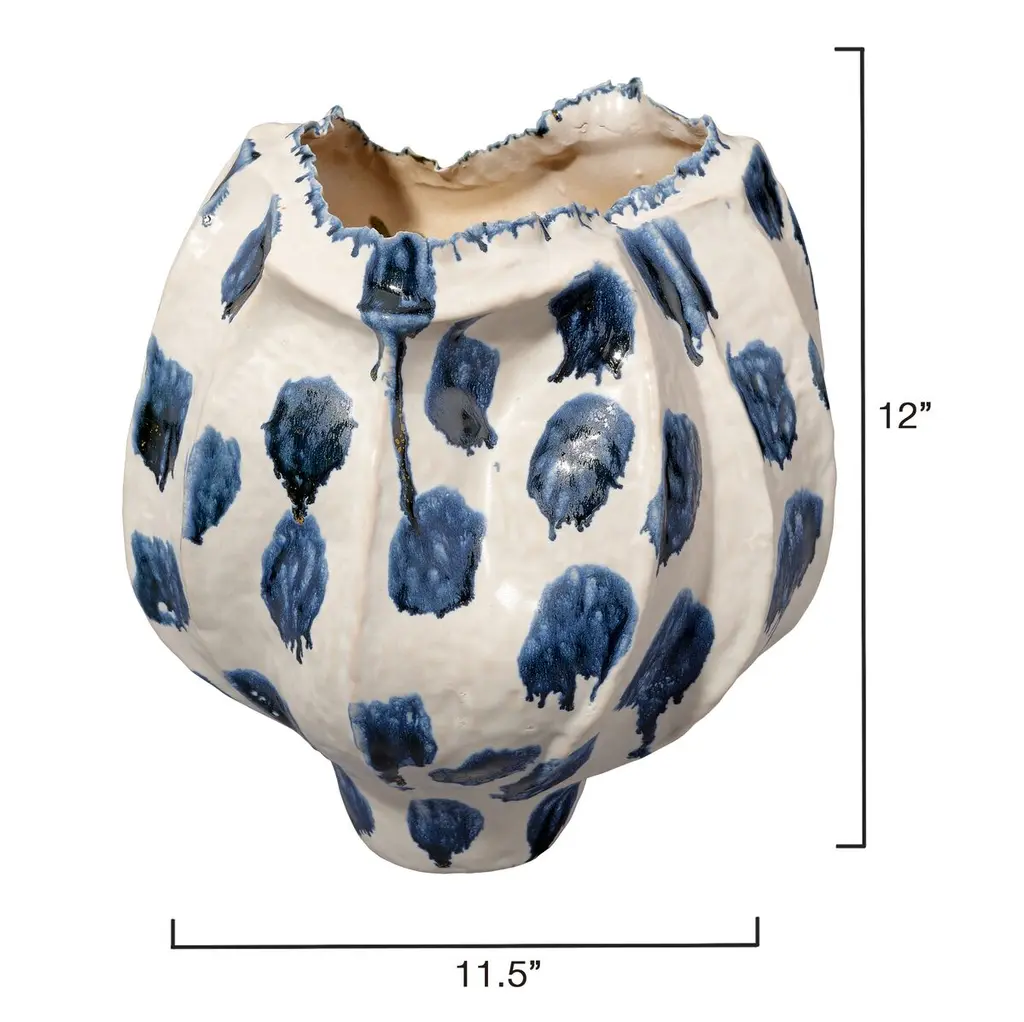 Monet Ceramic Wide Dotted Vase, Blue/white