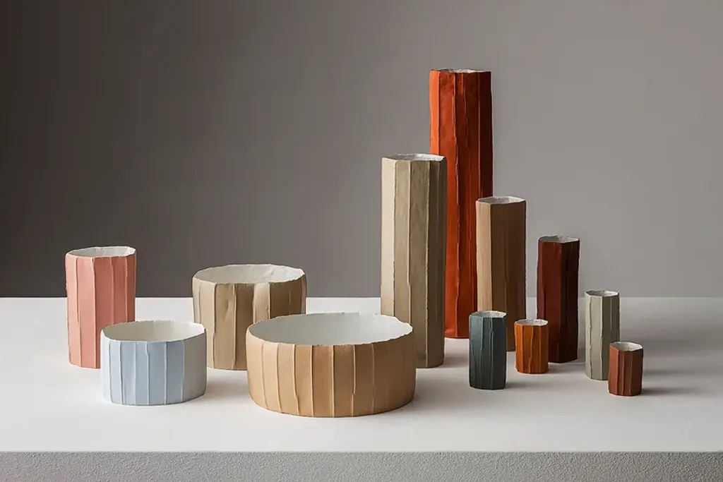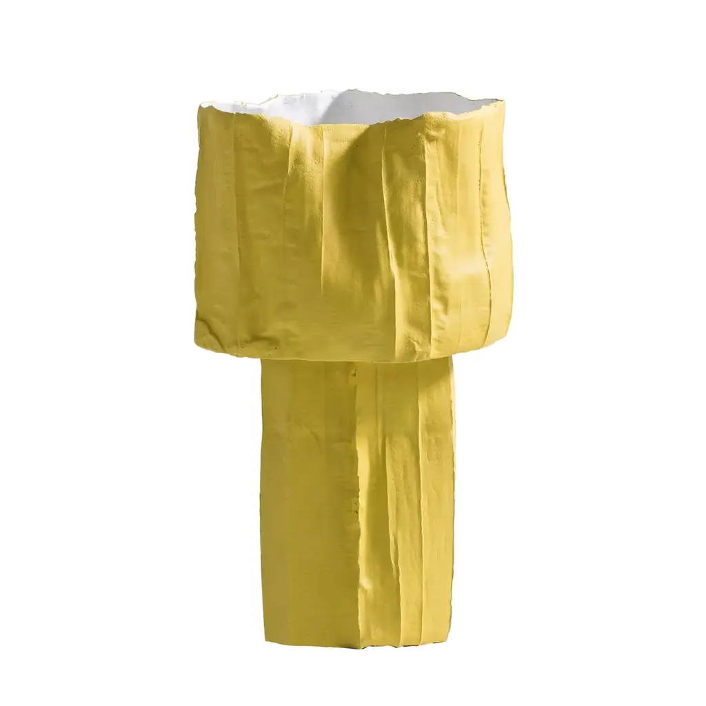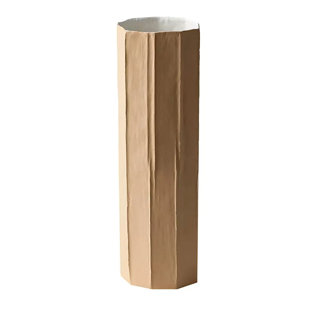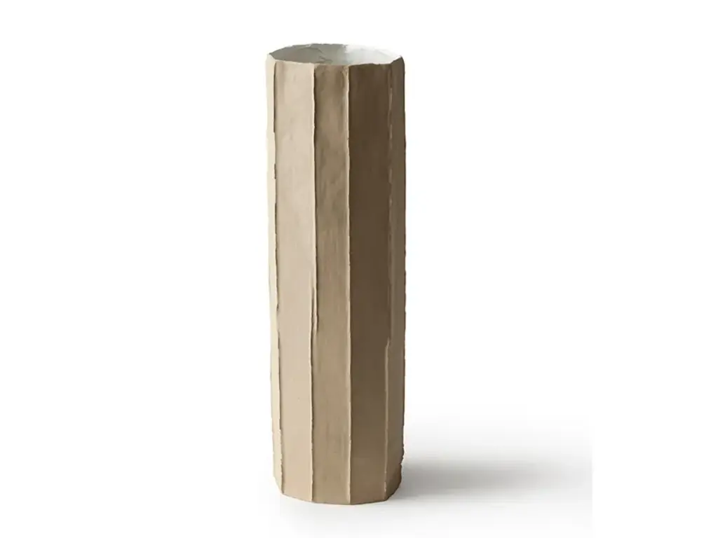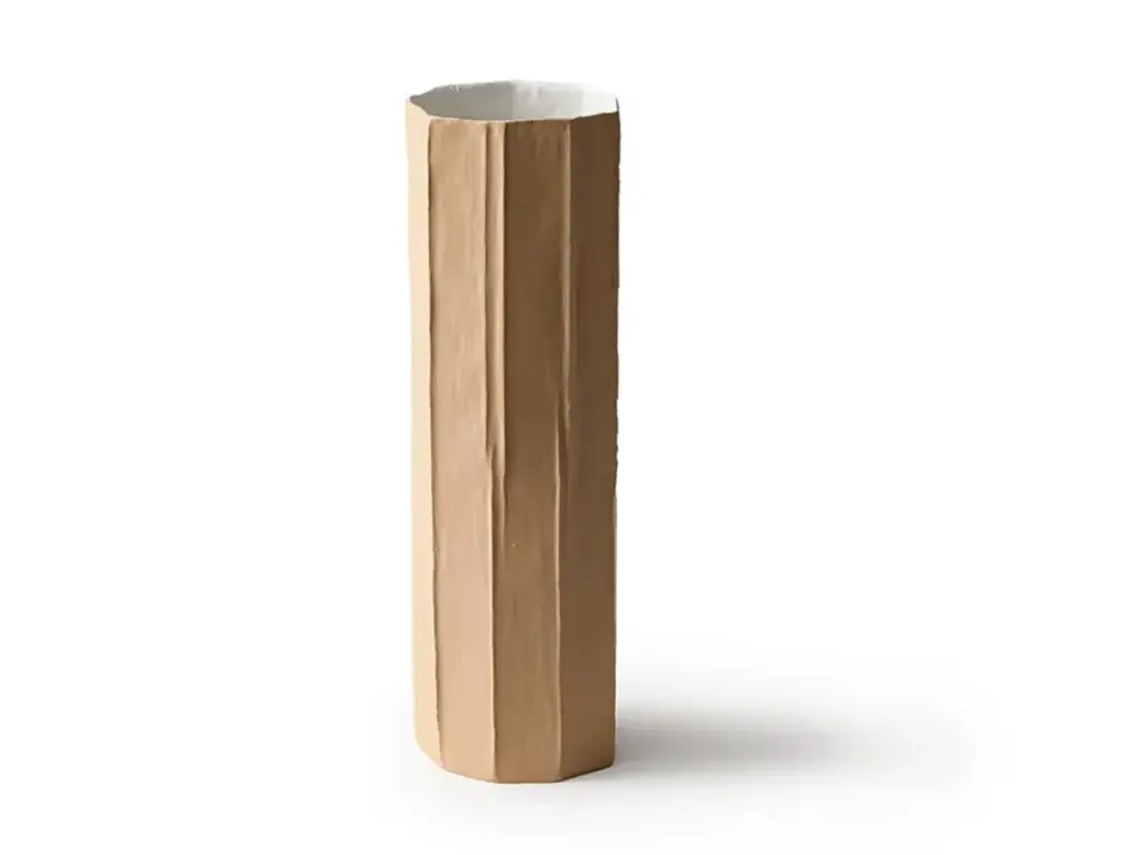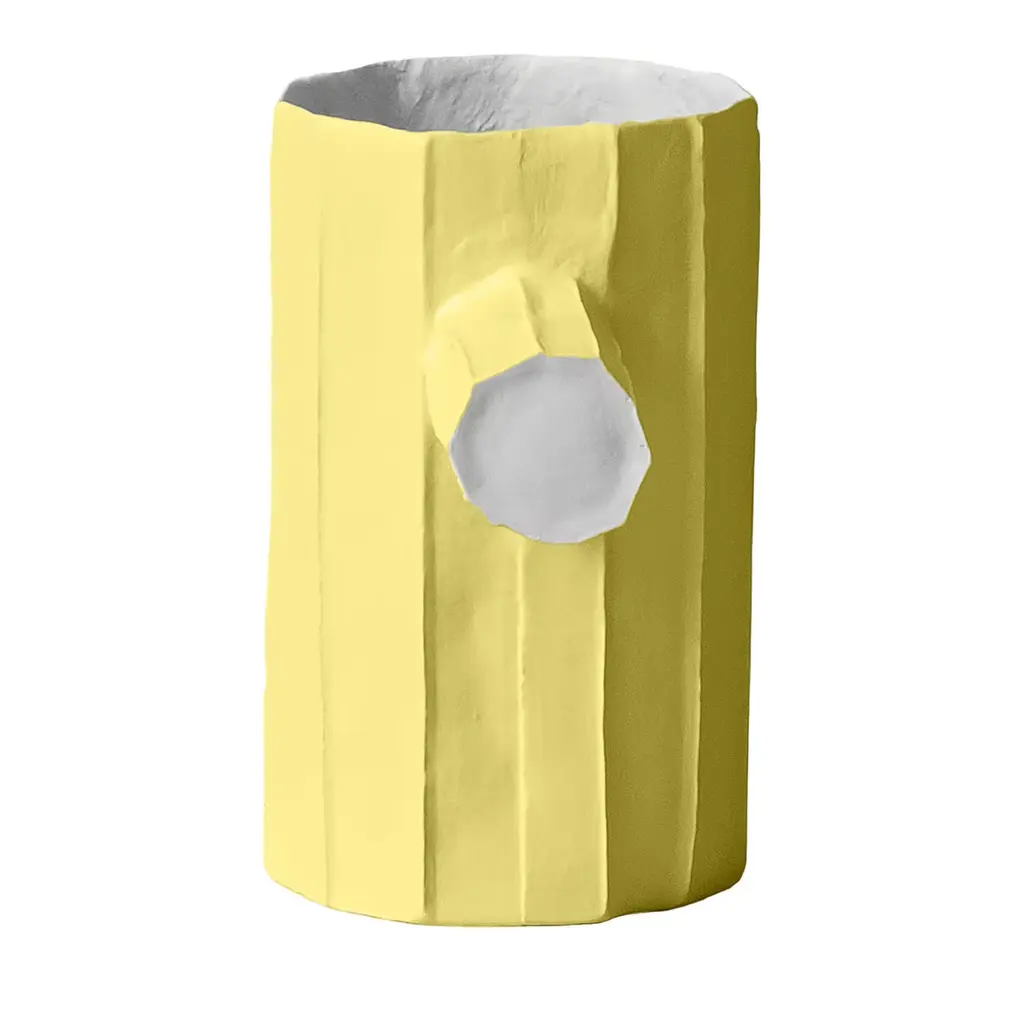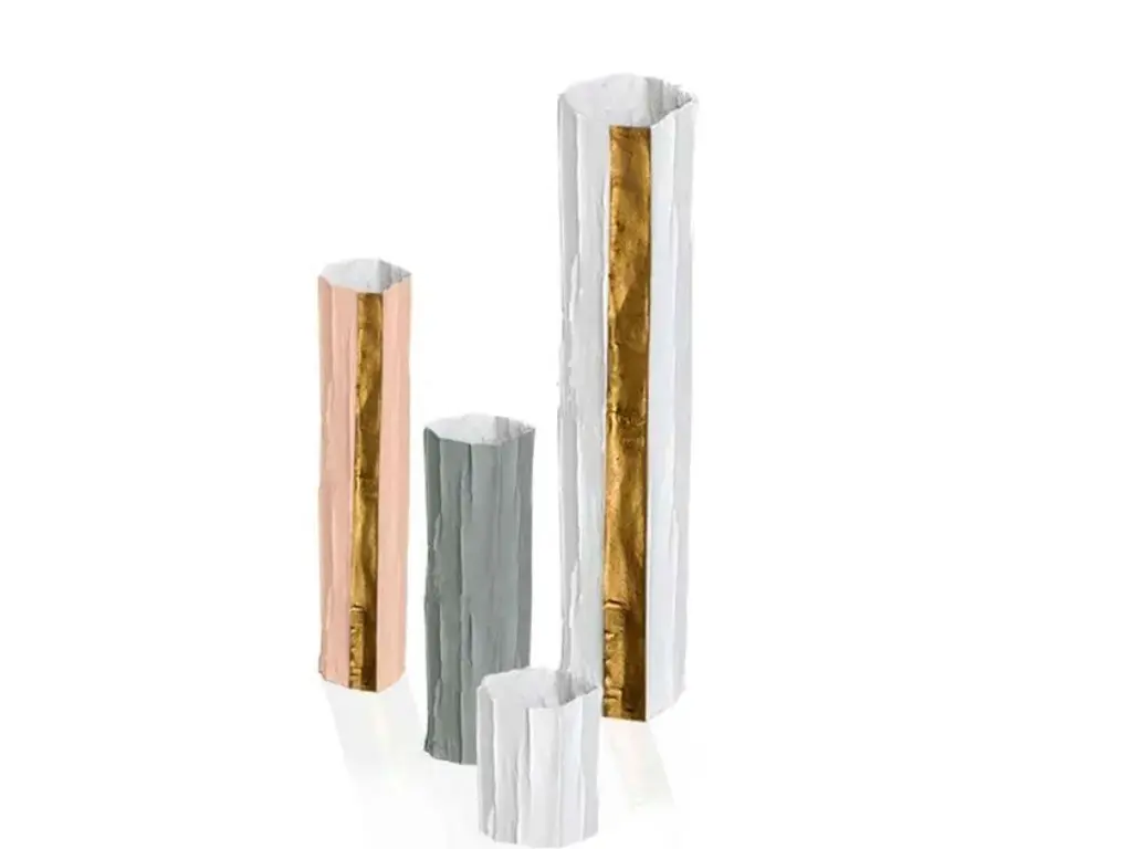 Mono vases are handcrafted using paper-clay, a combination of paper pulp and fibers with a ceramic blend.They are available in the following finishes:- white- white + gold- colored- colored + gold