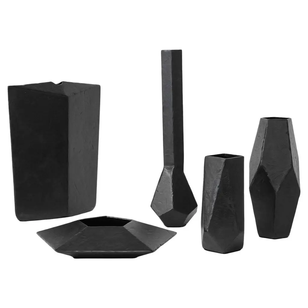 Mono Corteccia Set Of 3 Vases E17/antracite D17/tortora Chiaro & C15/cacao