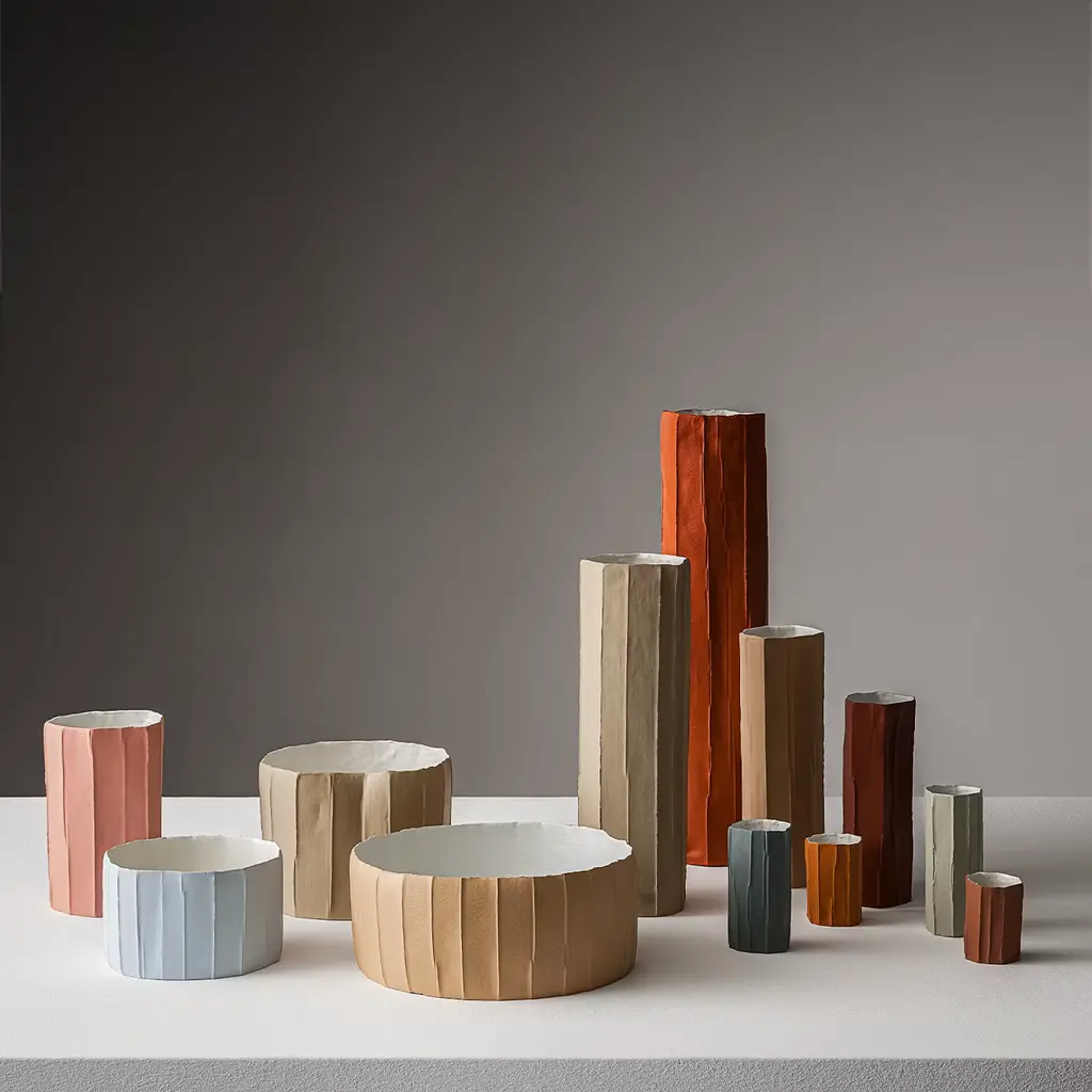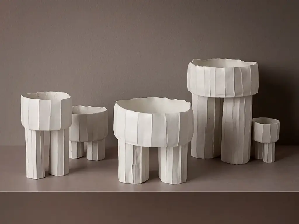 Every one of Paola Paronetto’s creations is unique. Slight variations in shape, colour and size are to be considered a guarantee of authenticity and value. They are finished with non-toxic satin-finish enamels. Although very rarely, it is possible for them to leak after long periods of exposure to water. It is therefore advisable to test their water resistance before using them on delicate surfaces. They should not be used as dining utensils. The white pieces can be washed with water or sanitizing products, whereas the coloured pieces must be treated more gently and cleaned with a feather duster or a soft cloth, dry or moistened very slightly with water.