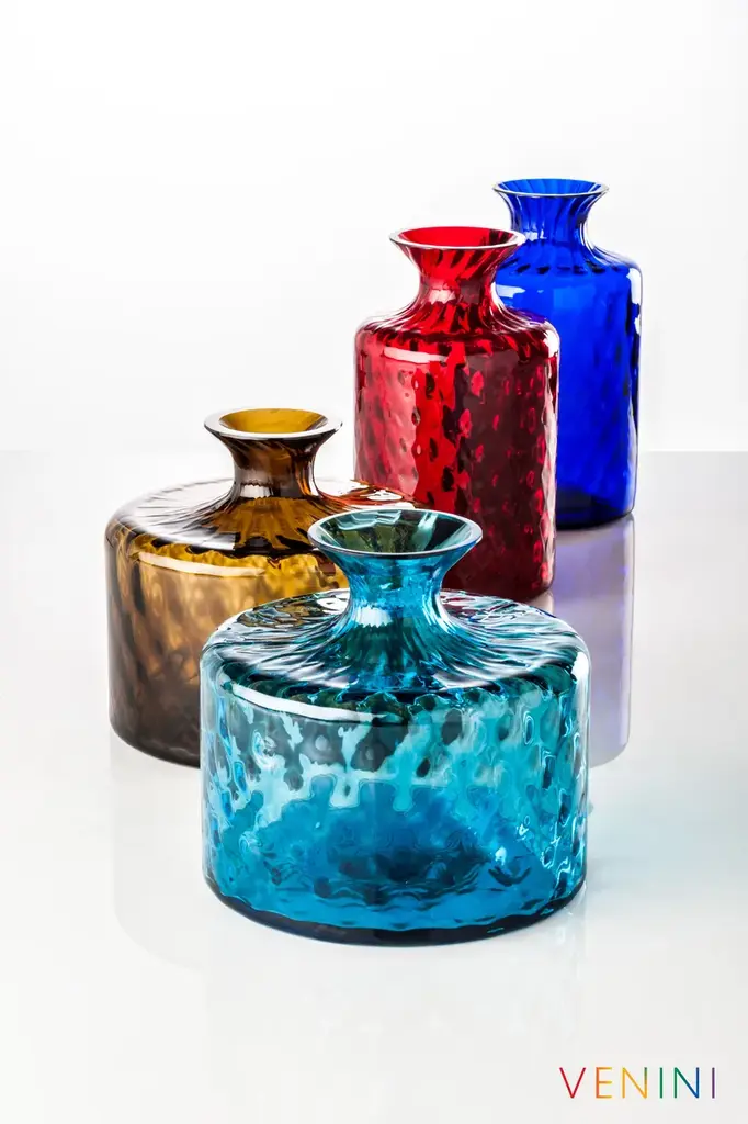 Monofiori Carnevale is a hand-blown glass vase with the traditional balloton processing with a metal mold, for a cross relief effect. Like the icons that inspired them, these pieces are made using the Balloton technique. Every Monofiore Carnevale vase is a small handcrafted creation; glass is blown using traditional metal molds, creating a unique crossed relief optical effect on its surface. Colourful and lively, it is always ready to party.Colors:TEA BallotonAQUAMARINE BallotonArt, Colour, Quality, Uniqueness and Craftsmanship are the cornerstones of all VENINI glass creations. But VENINI is also the brand able to satisfy with excellent solutions gift ideas, monofloras, cups, objects for every occasion: anniversaries, Christmas, also suitable for multiple needs. Precious emotions through style and design.