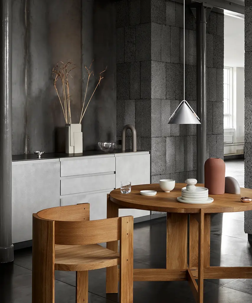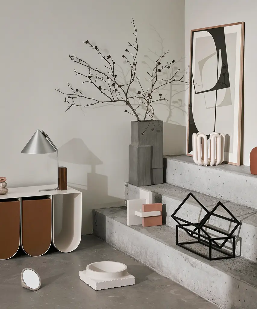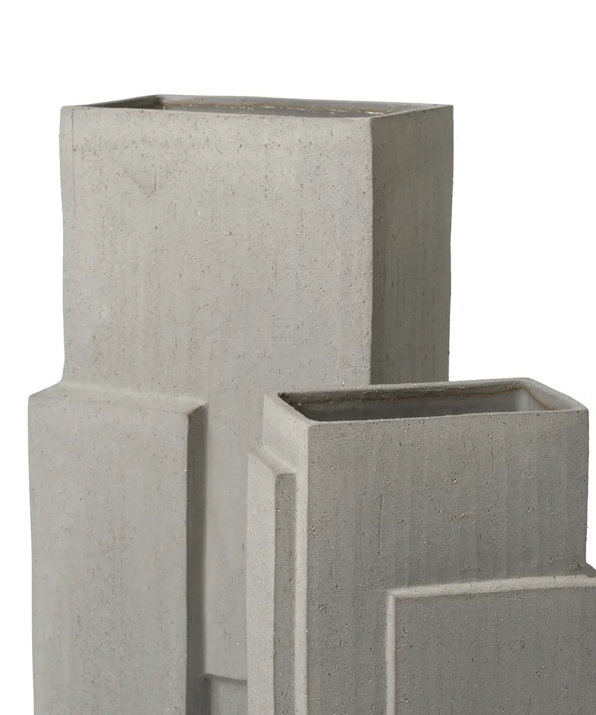 The Monolith vase is a modern designer vase from Kristina Dam Studio. Seen from a distance the Monolith vase might appear as a single massive stone or rock formation. The vase has a rough concrete-like outer surface that gives it a unique urban and rocky appearance suited for the modern home interior. The inside of the Monolith vases is glazed making it able to contain water for the flowers that you might place in it. The Monolith vase is a sculpture in itself, and you don't have to place flowers in it in order to legitimize it in your home interior. Enjoy how the outline and form of the Monolith designer vase cast the most beautiful shadows. This sculptural vase will amplify the style of any home and enable you to present flowers and bouquets in the most fashion possible. Style your home with the elegant Monolith Vases and use them as a part of your dining room or as a centerpiece on your coffee table. The Monolith vases are available in two sizes - the designs are identical. The Monolith Vase collection from Kristina Dam Studios is an alternative to the best-selling Dome Vase series. Designed by Kristina Dam Studio in Copenhagen, Denmark.