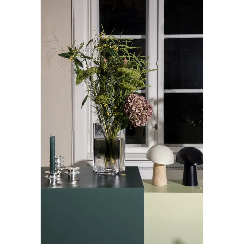 Fritz Hansen’s Moon Eye, consisting of two vases designed by Grethe Meyer, is an ode to craftsmanship and mouth-blown glass. Their varying height, thickness and hue make Moon Eye vases enchanting and unique – the set can be used together or as stand-alone pieces of glass art. The higher, crescent-shaped Moon is crafted in clear glass while the the glass of the smaller vase, Eye, shifts from gray to clear.