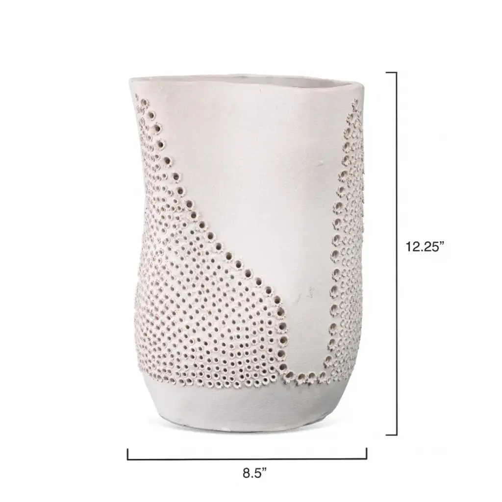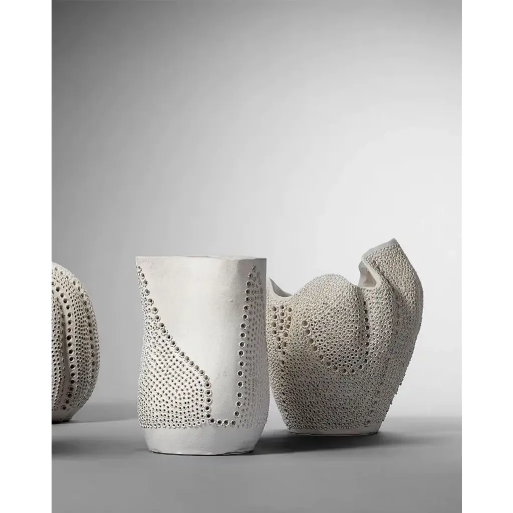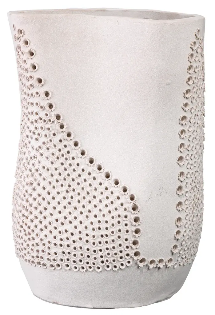 Sure to be a star among your collection, this decorative vase captures the celestial beauty of our moon in porcelain. Featuring an organic shape, matte finish and bold perforated patterns that are created one-at-a-time by talented artisans, ensuring each is an individual work of art.