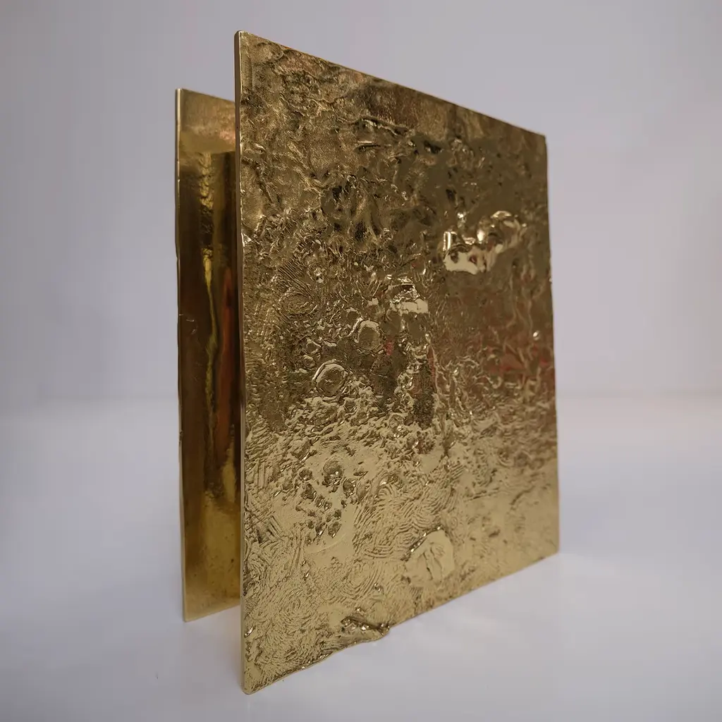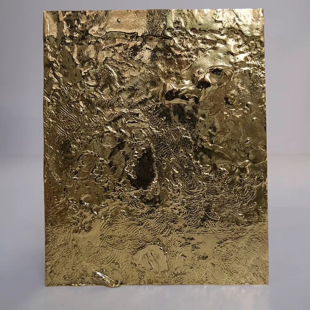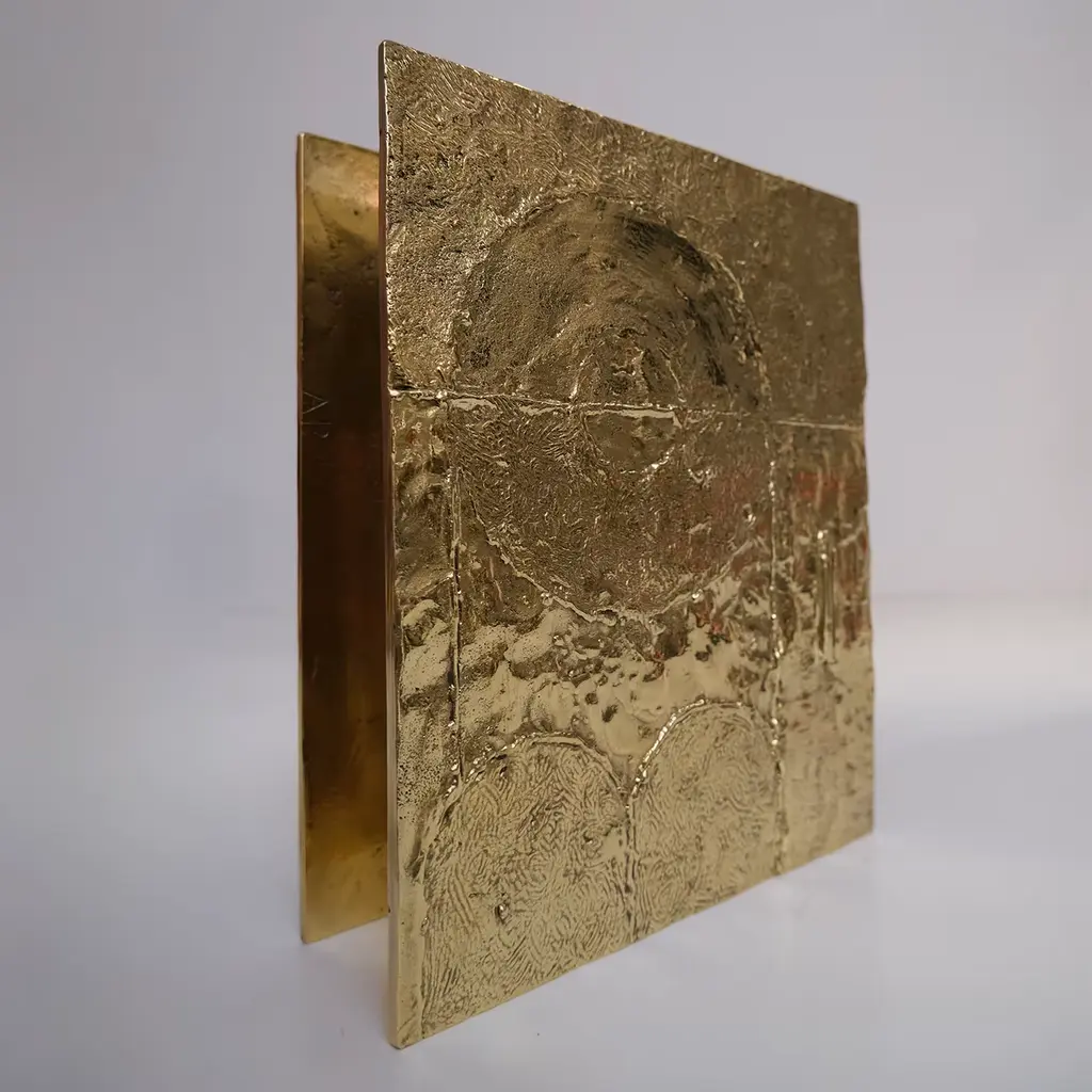 Forged in cast bronze, this artwork reveals unpredictable lunar architectures with distinct patterns on each side. Customizable for uniform patterns. Wanderart metal-cast artworks are all hand made, therefore dimensions and weight may vary.