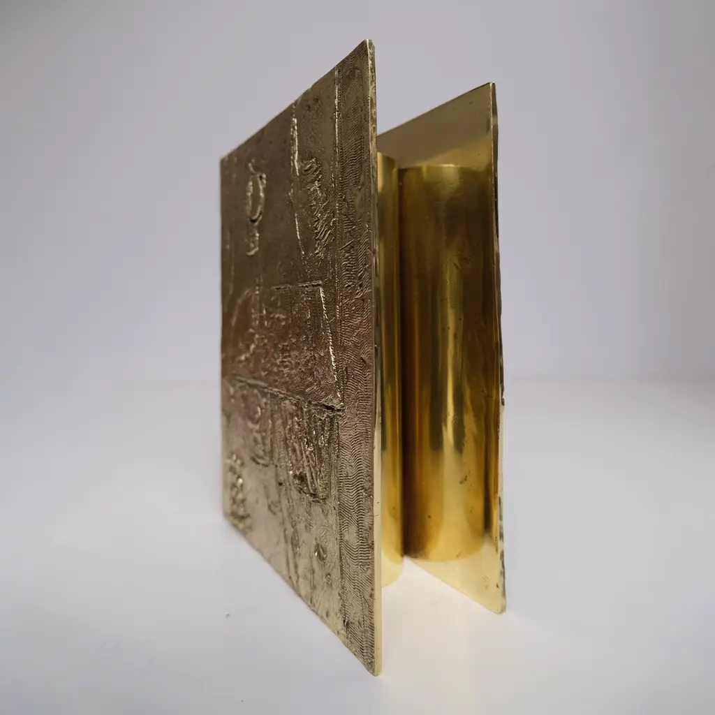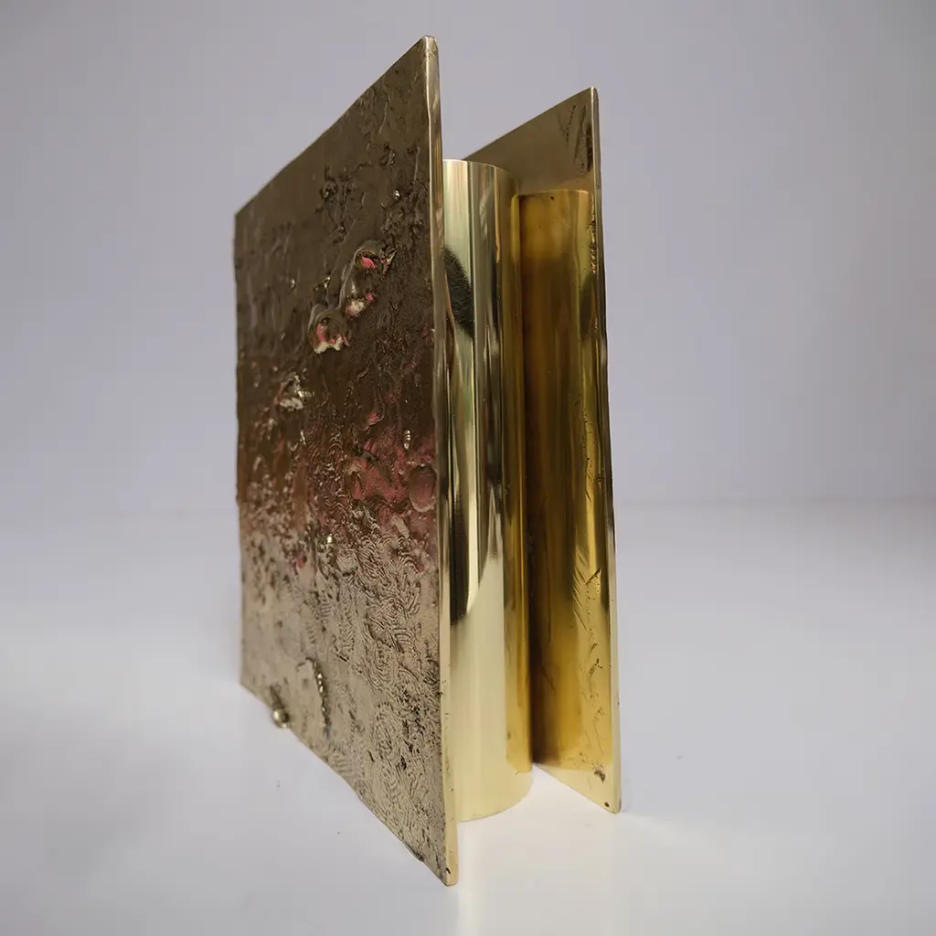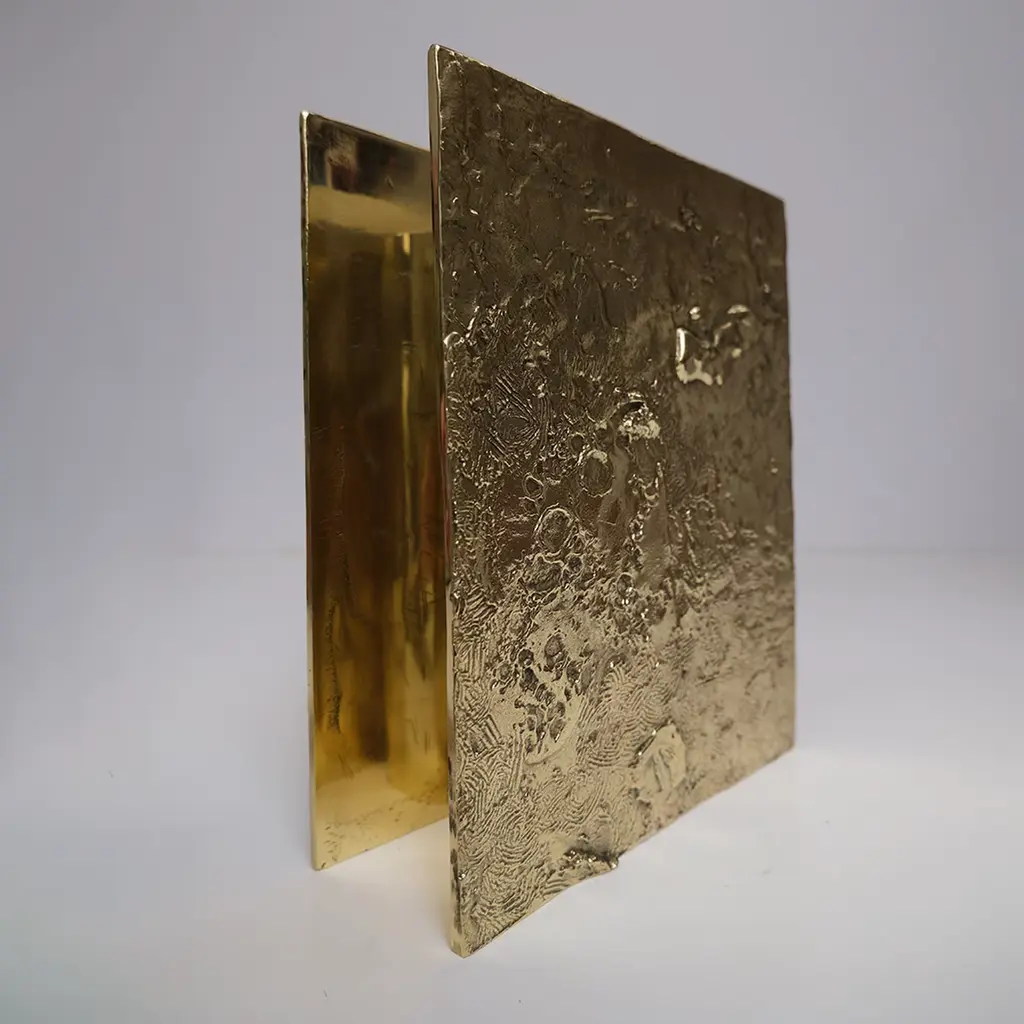Forged in cast bronze, this artwork reveals unpredictable lunar architectures with distinct patterns on each side. Customizable for uniform patterns. Wanderart metal-cast artworks are all hand made, therefore dimensions and weight may vary.