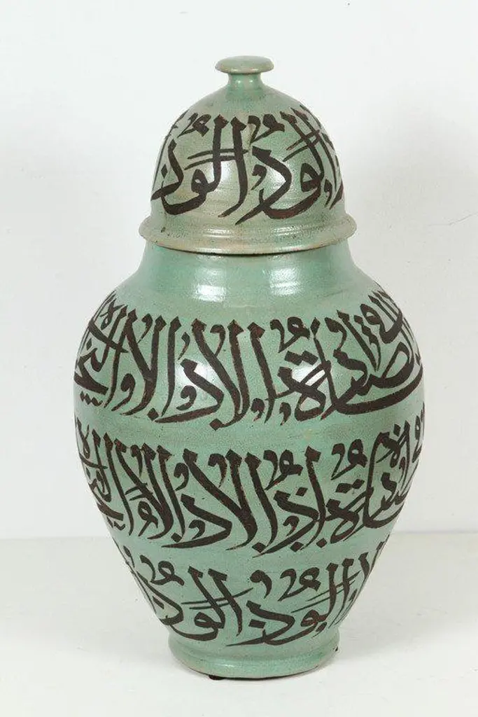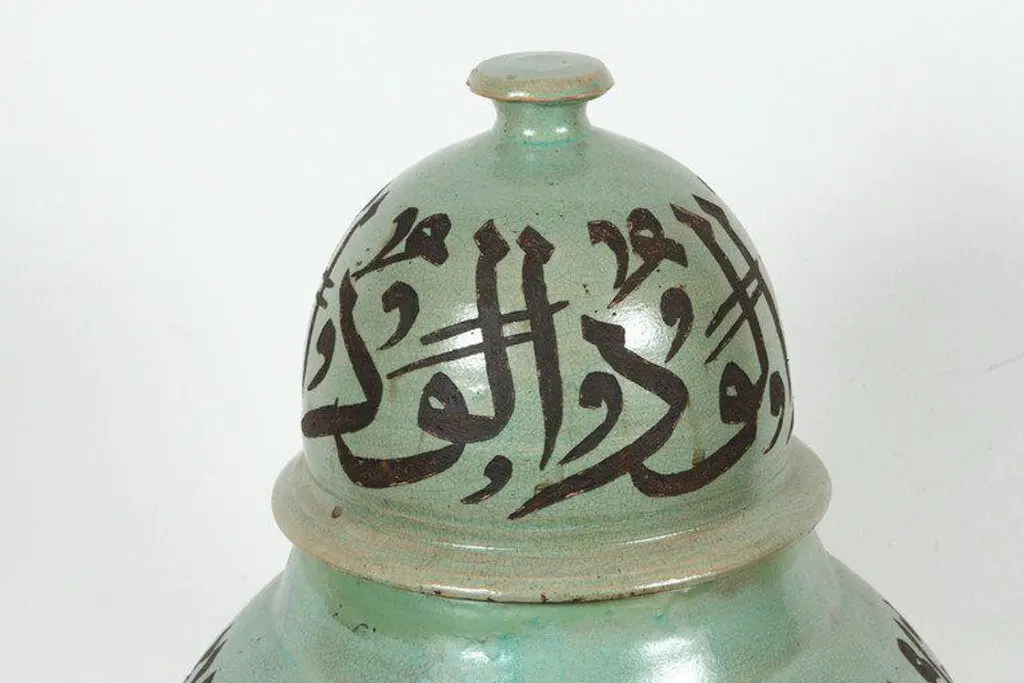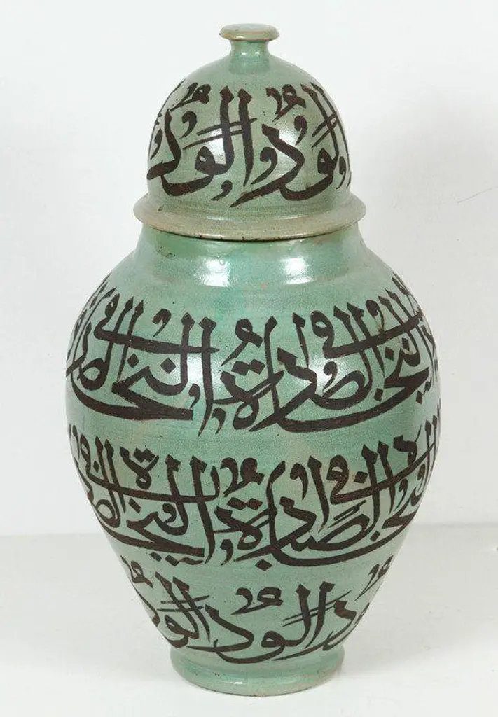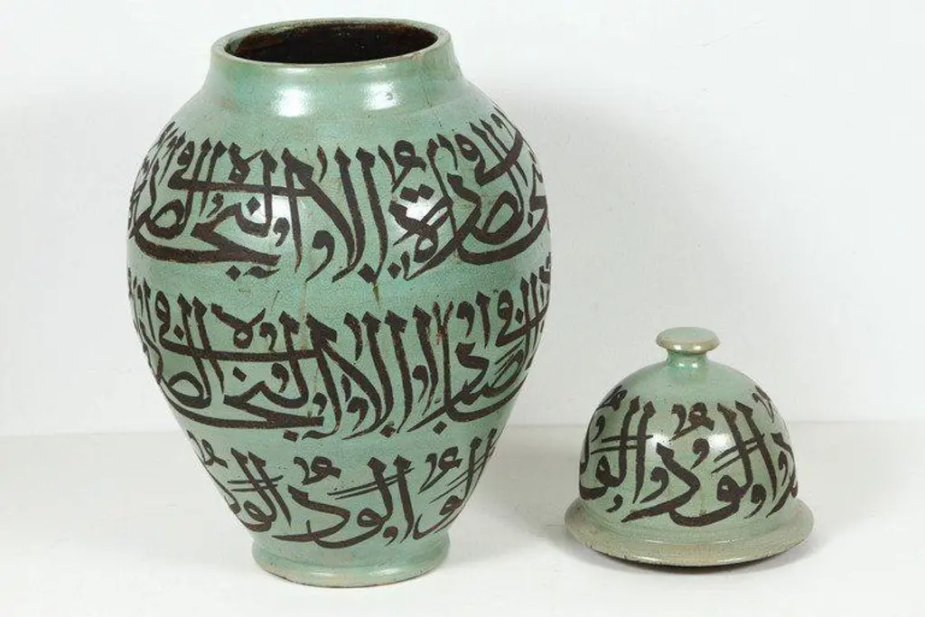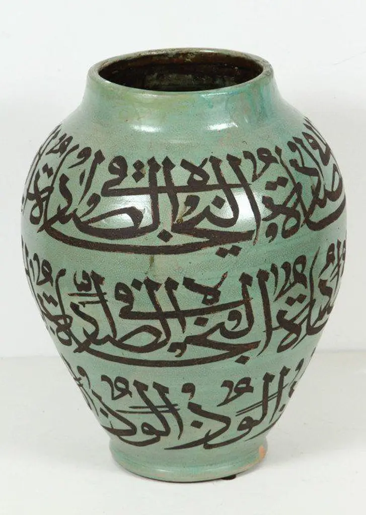 Moorish Ceramic Urn With Chiseled Arabic Calligraphy Writing