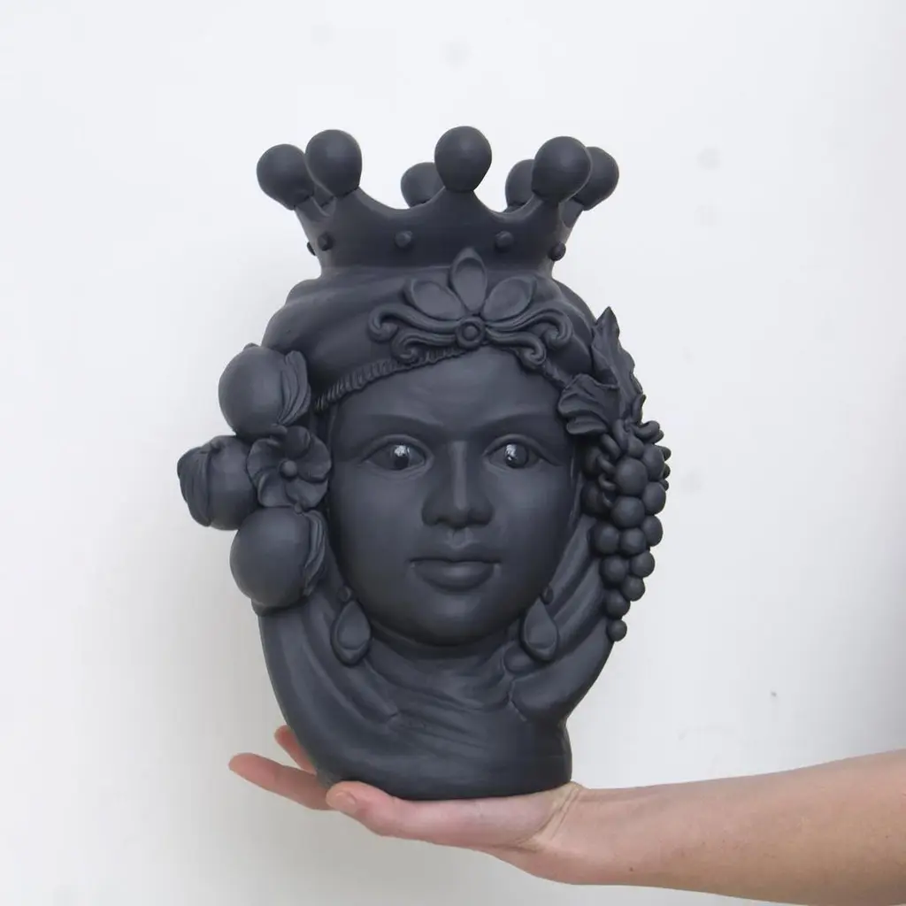 Moorish Heads Vases "Catania Dark Gray", Handmade In Italy, 2019, Unique Design