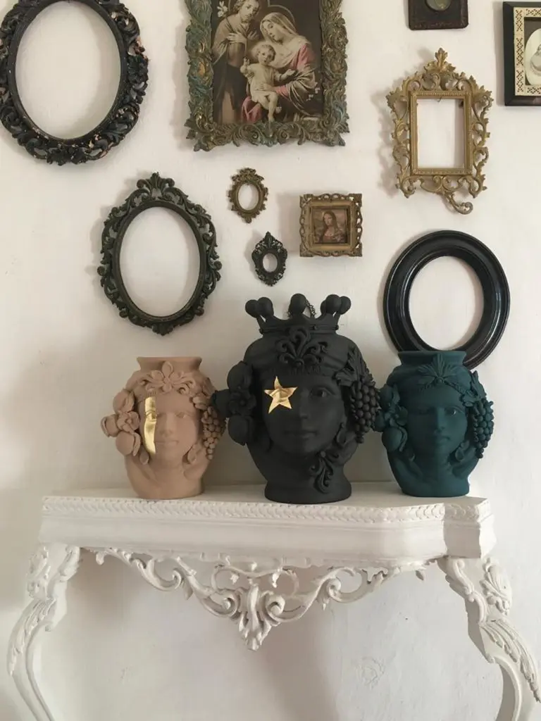 This collection is a work of art that make a statement in modern décor and in the modern cultural art world. It can be used as a vase containing flowers, or as a beautiful centerpiece or home décor object.Its design is inspired by the Moorish-inspired sculptures in Sicilian ceramic tradition. All Made in Italy:Made in Italy furniture means design, quality, style and sophistication. All the details are handcrafted and all the pieces are made to order, so they can come with different colors (see color palette in the pictures).This works are simply amazing with their incredible elegance. No wonder Dolce & Gabbana choose them to décor their most famous shop in Milan.Have yourself a truly unique piece!Moor Heads are in the White Lotus style, but matt! A new elegant and charming way to have moor heads like you have never seen before!