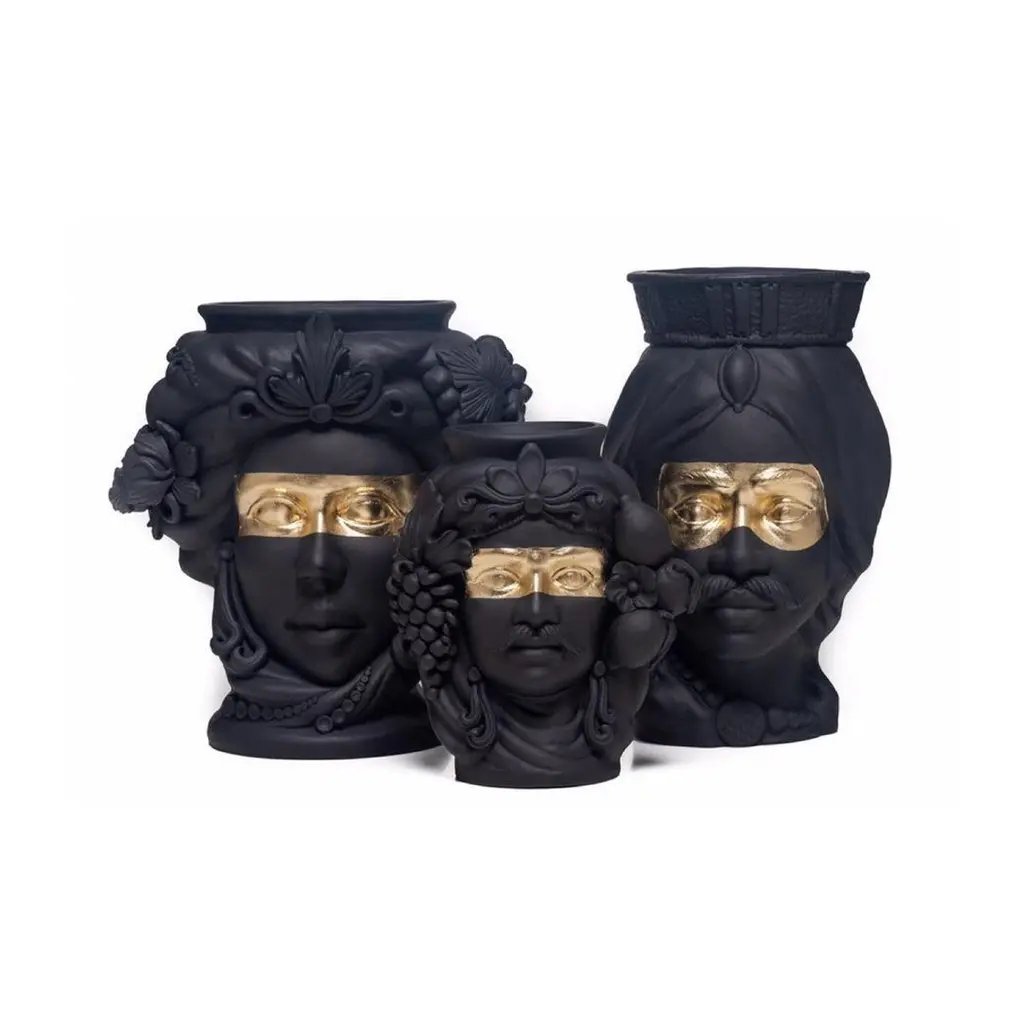 Moorish Heads Vases Collection "Licata", Set Of 3 Pieces, Handmade In Italy