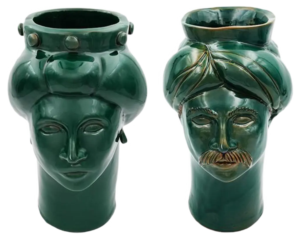 This collection is a work of art that make a statement in modern décor and in the modern cultural art world. It can be used as a vase containing flowers, or as a beautiful centerpiece or home décor object.Its design is inspired by the Moorish-inspired sculptures in Sicilian ceramic tradition. All Made in Italy:Made in Italy furniture means design, quality, style and sophistication. All the details are handcrafted and all the pieces are made to order, so they can come with different colors (see color palette in the pictures).This works are simply amazing with their incredible elegance. No wonder Dolce & Gabbana choose them to décor their most famous shop in Milan.Have yourself a truly unique piece!Moor Heads are in the White Lotus style, but matt! A new elegant and charming way to have moor heads like you have never seen before!