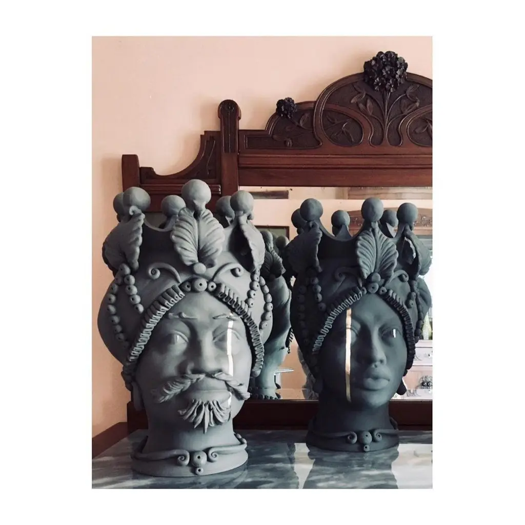 This collection is a work of art that make a statement in modern décor and in the modern cultural art world. It can be used as a vase containing flowers, or as a beautiful centerpiece or home décor object.Its design is inspired by the Moorish-inspired sculptures in Sicilian ceramic tradition. All Made in Italy:Made in Italy furniture means design, quality, style and sophistication. All the details are handcrafted and all the pieces are made to order, so they can come with different colors (see color palette in the pictures).This works are simply amazing with their incredible elegance. No wonder Dolce & Gabbana choose them to décor their most famous shop in Milan.Have yourself a truly unique piece!Moor Heads are in the White Lotus style, but matt! A new elegant and charming way to have moor heads like you have never seen before!