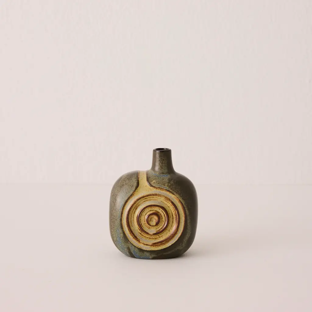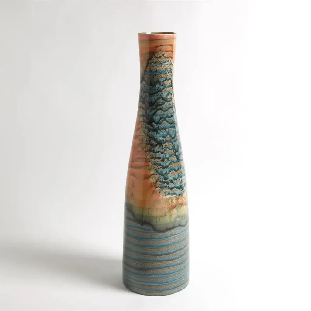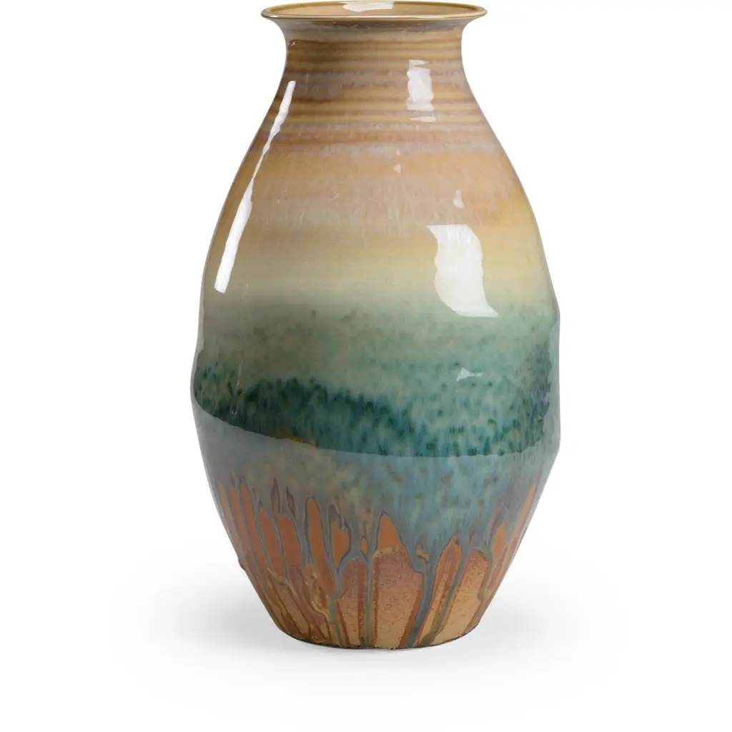 Ceramic. Browns/Greens/Yellows Glaze. Browns,Greens And Yellows Colored Ceramic. 7W X 7D X 11.5H