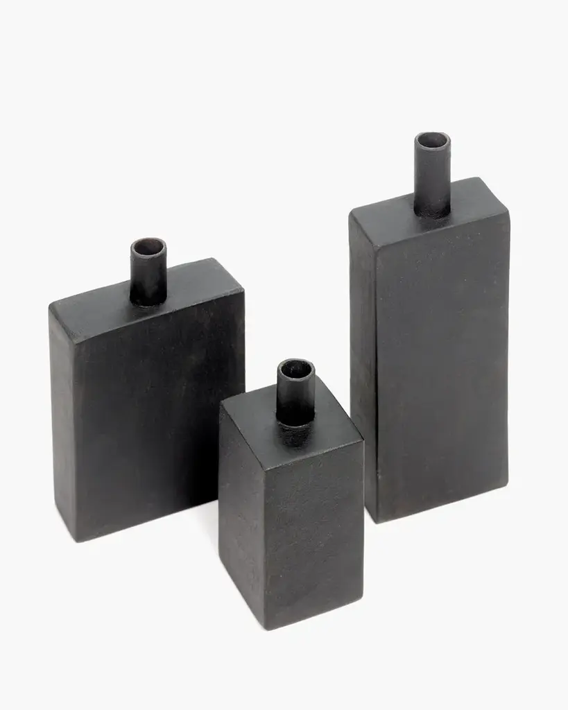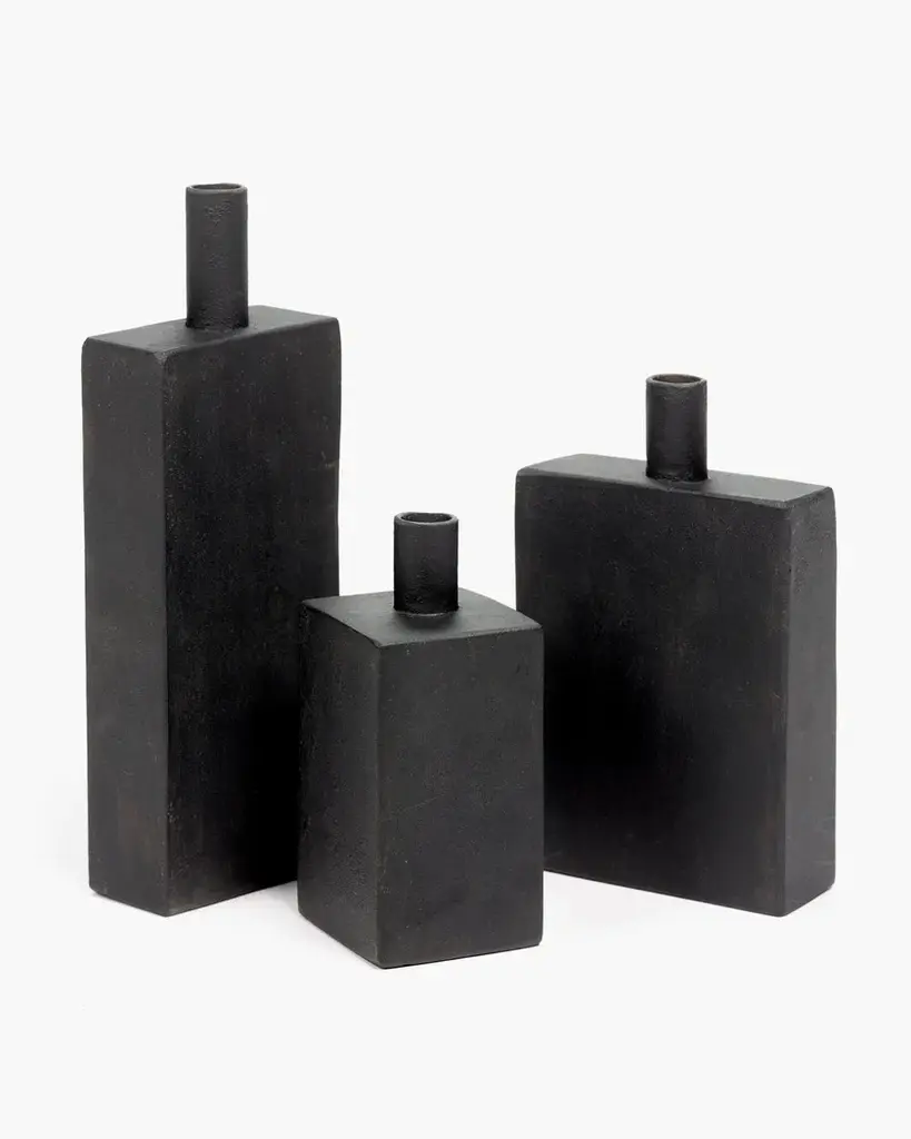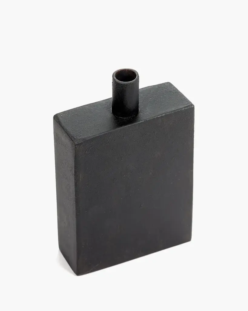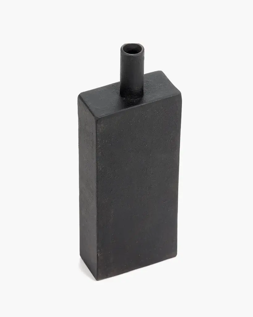 Moro is a metal vase.The Sicilian art smith and designer Antonino Sciortino draws his designs from his own memories or finds inspiration in the rich history of his native region. Concurrently, Sciortino is always seeking a new touch to intrigue the user.“In the Moro vases, the use of sheet steel finished with an old and dark patina (hence the name) lifts the simple form to an ode to brutalism. The dark patina attracts without distracting attention from the shape, the true protagonist of my designs.”The hands of the Milan (Italy)-based designed Antonino Sciortino bring metal to life. Objects shaped from soft iron create a sculpture-like aura. The handcrafted finish emphasizes the soul we recognize in each object. Can be perfectly integrated in a wide range of interior spaces because of their pure forms and the vintage look and finish.