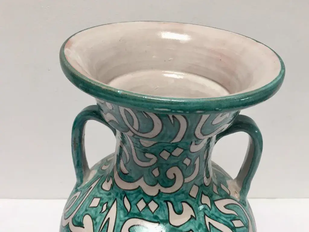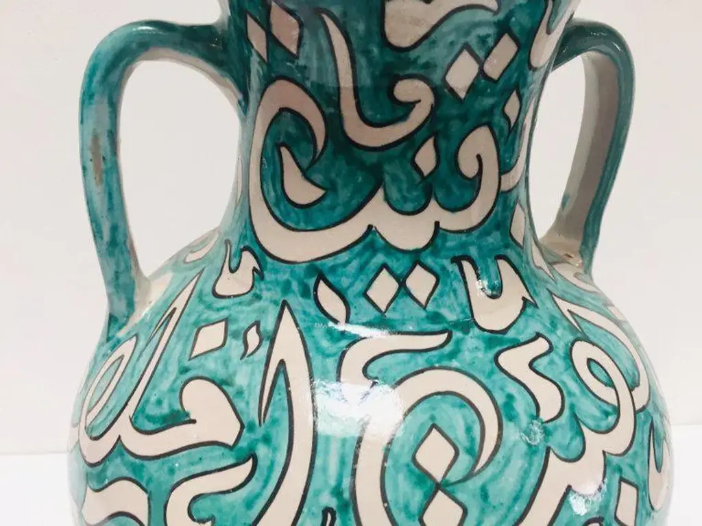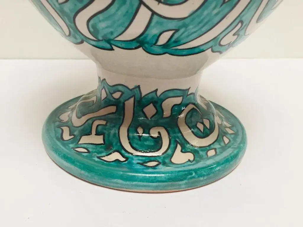 Moroccan Glazed Ceramic Vase With Arabic Calligraphy