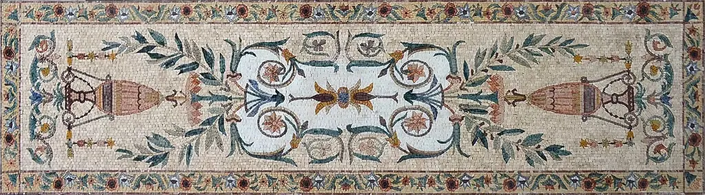 Mosaic Flooring - Double Vases - 240cm X 60cm (94" X 24") / With Frame