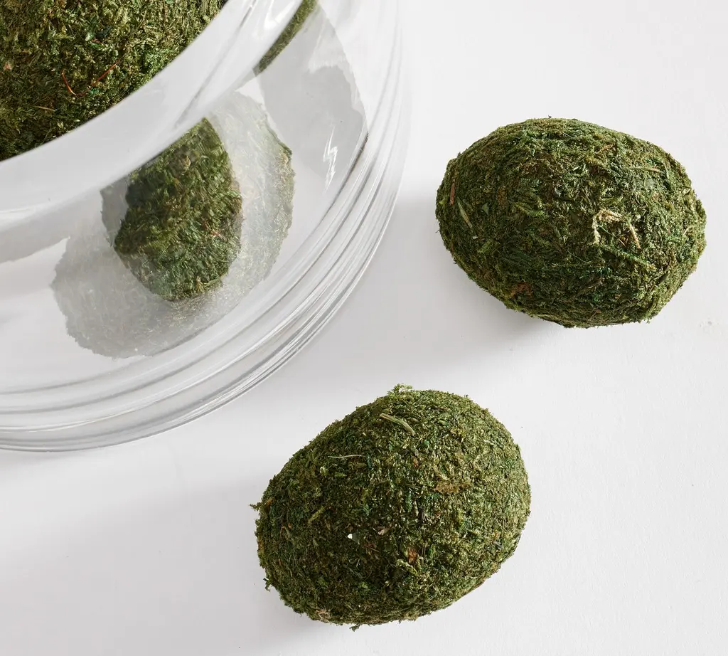 Add natural greenery to your seasonal decor. These moss-covered eggs have a vivid color and rich texture to bring a little bit of spring indoors.