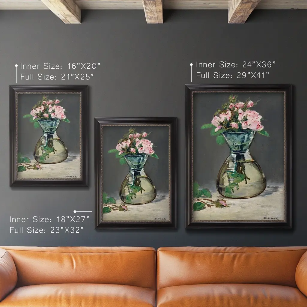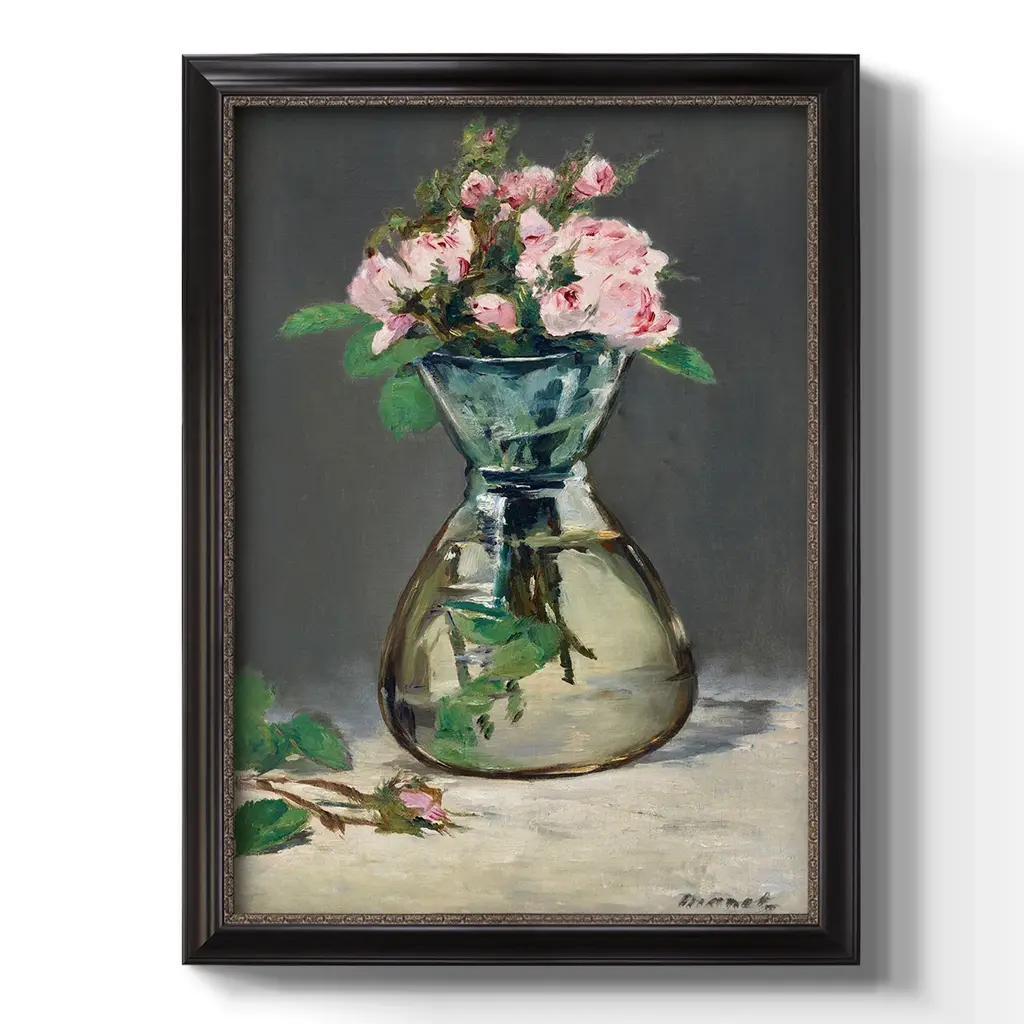 Moss Roses In A Vase Premium Framed Canvas- Ready To Hang - 24x36 - Black
