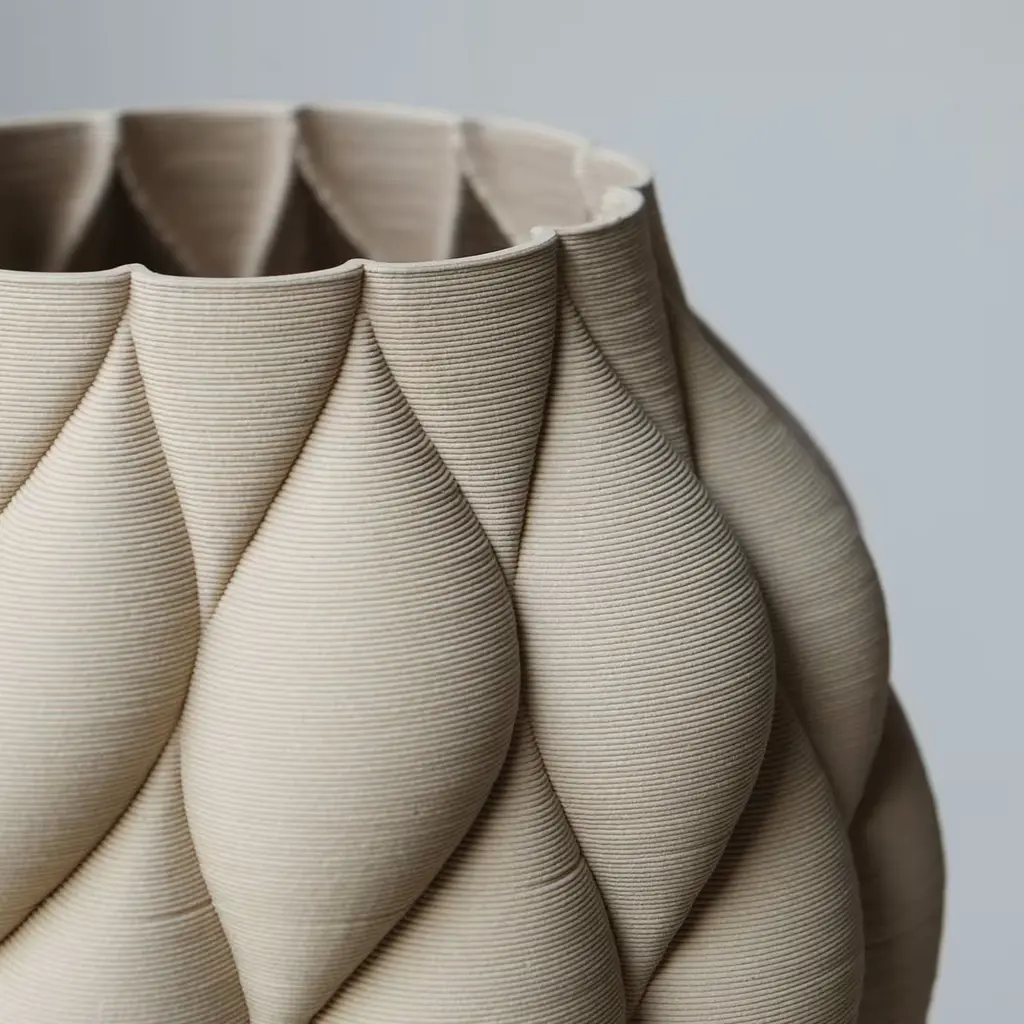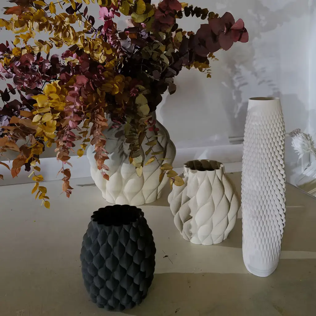 The Mumbai Vase is part of the Mitti Vases collection, presented at the Milan Design Week Fuorisalone 2021. The Mumbai Vase plays with shadows just like the wet sand enriches the visual depth of dunes, being it as a playground for the light, radiating in different directions and creating unique atmospheres. Each piece is slowly crafted with machinery and hands, silently negotiating two contradictory elements, such as stoneware and 3D printing.