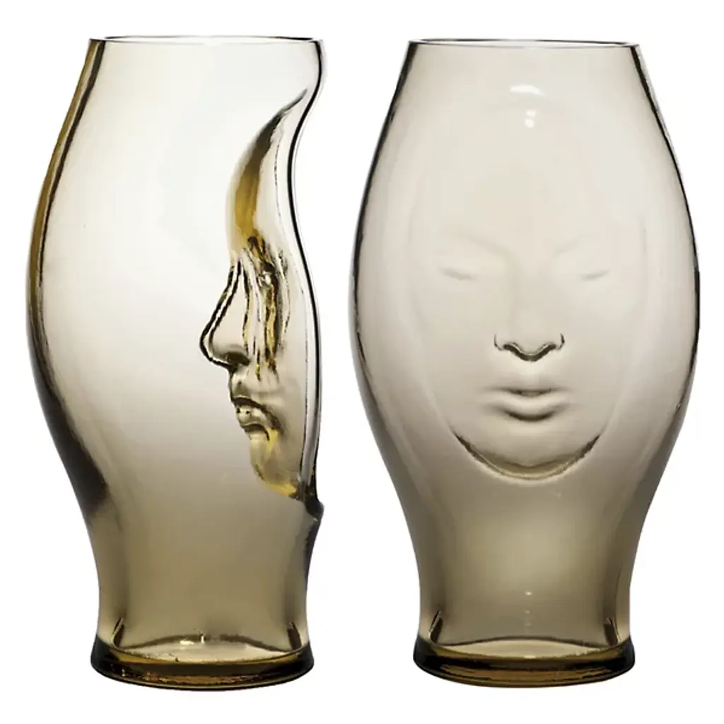 The Murana Vase from Venini brings the mystique of Venetian carnival masks into the world of glass art. Designed by Fabio Novembre in 2012, this piece captures a face in profile within its fluid form, handcrafted by Murano's master artisans. The vase creates an intriguing dialogue between function and art, perfect for mantels, console tables, or library shelves. The Italian craftsmanship shines through the deliberately asymmetrical design, where traditional masquerade culture meets modern artistic expression.