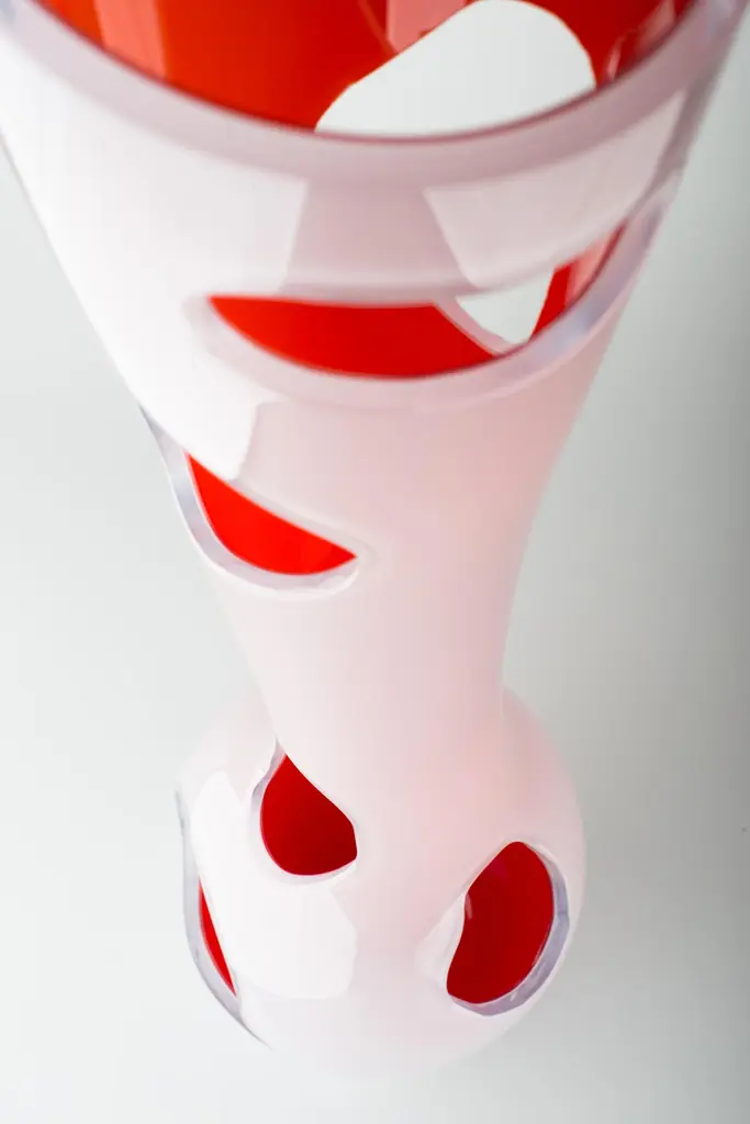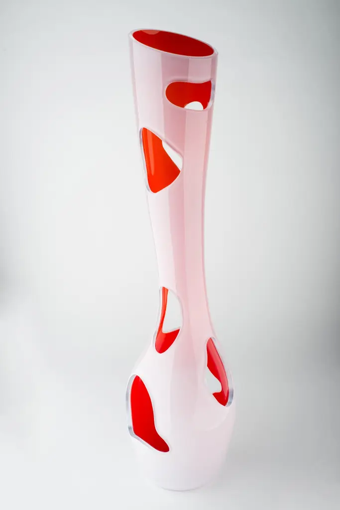 The Gallery collection showcases exclusive designs by Reda Amalou.The pieces are crafted by some of the best artisans around the world and are edited as a series of 8 and 4 artist’s proofs.Each piece is signed and numbered.This is not a vase is a collector item, it is more a sculpture than a functional object. Designed for the Maison Veronese, it is made in Murano glass, Its shape, sensual and pure, unwinds in glass curves. The white and opaque glass on the outside hides the heart of the object. The cutout in the glass let the light in, and the deep venetian red inside is revealed to the viewer. The white and the red are two opposites of the same object.Murano glass. This product is a hand-manufactured object. Each piece is unique. It may vary slightly in colour, finish and shape from one item to another. This is the guarantee of a true handmade object. Limited edition 8 + 4 artist proofs ( Please contact us for the existing numbers still on sale )Hauteur : 650mmLargeur : 160mmPlease contact us for more information or for a bespoke order