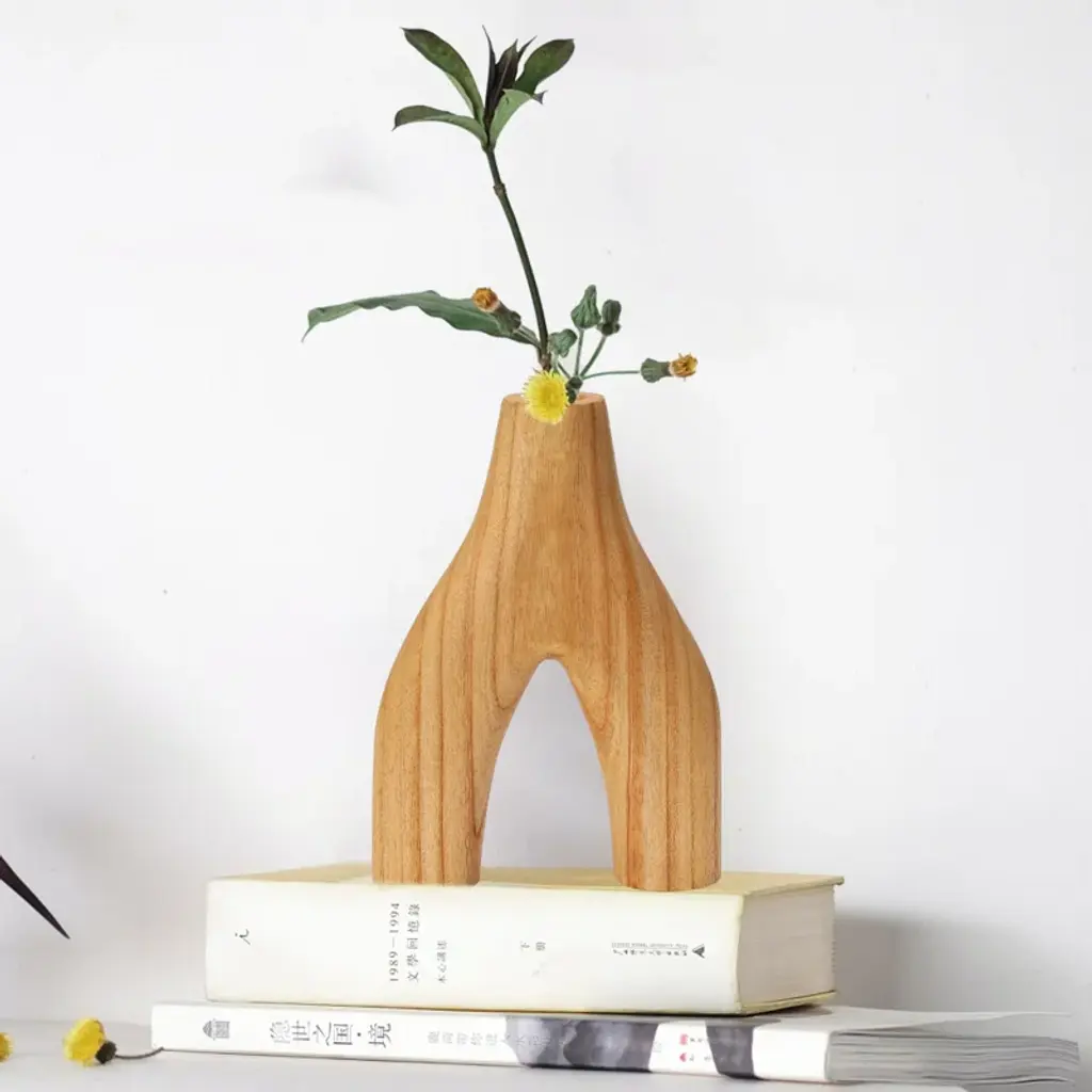 Elevate your floral arrangements with this handcrafted wooden table vase. Its novelty shape adds a modern touch to any room. Perfect for indoor use, this vase is a stylish addition to your home decor.